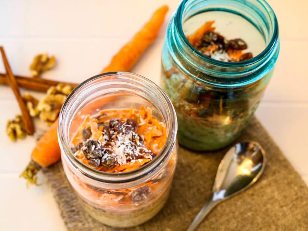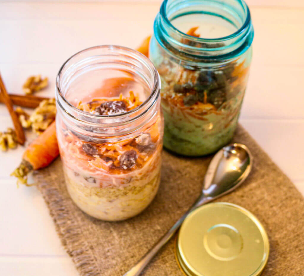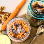 This vegan recipe for Carrot Cake Overnight Oats is filled with the flavor and health of carrots, walnuts, raisins, coconut, and spices.