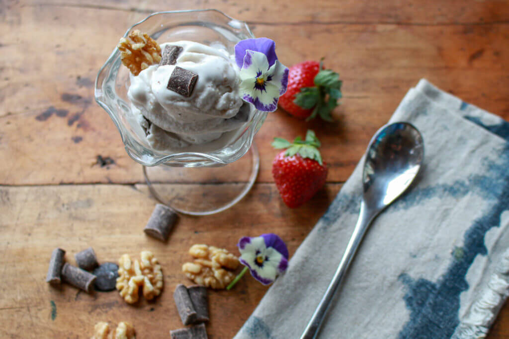 Home-made vegan ice cream has never been so easy—and delicious—as in this ultimate recipe for a chunky dark chocolate and toasted walnut ice cream featuring coconut milk.