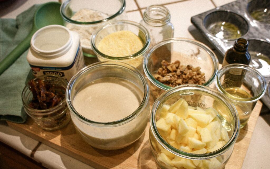 - Pour the batter into the prepared muffin tin (makes 10 muffins).