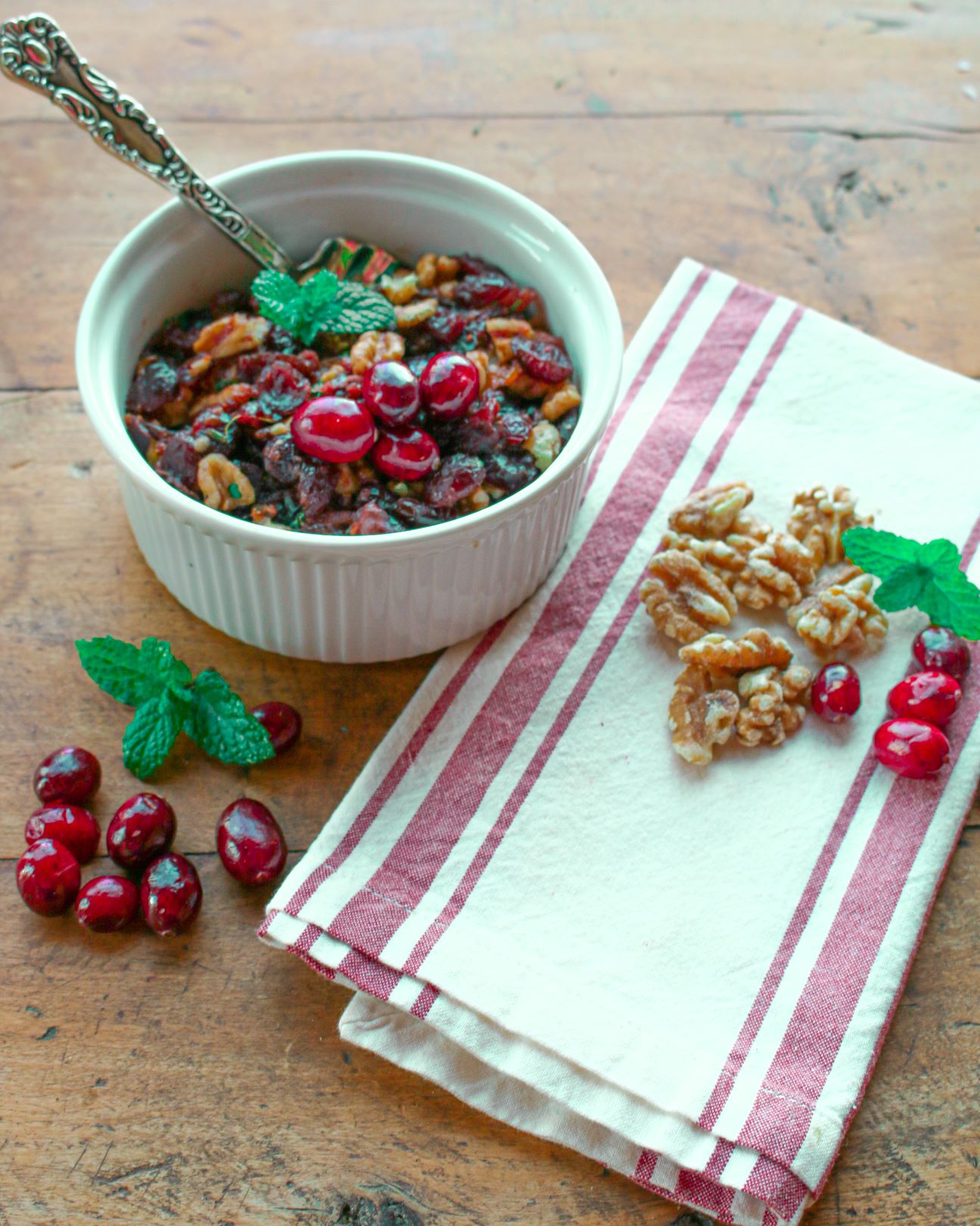 This Cranberry Relish with Walnuts is super easy to make and it’s so delicious served with savory dishes and sides. It’s the perfect accompaniment for the holiday season, too.
