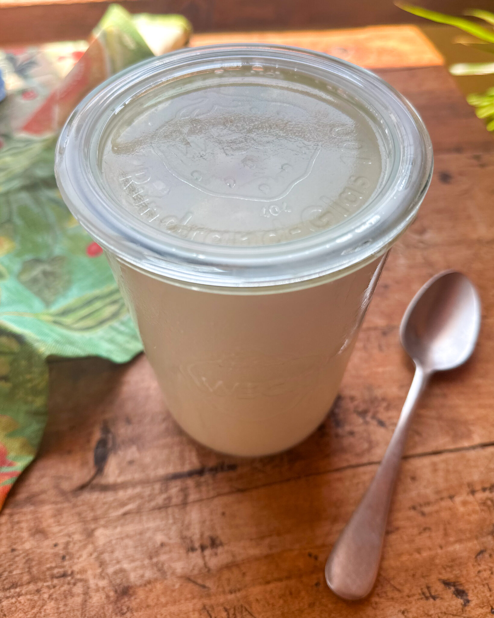 6. Place in the refrigerator for up to 10-14 days. Plan on making your next batch of soy yogurt using the reserved cultured soy yogurt within 10 days.