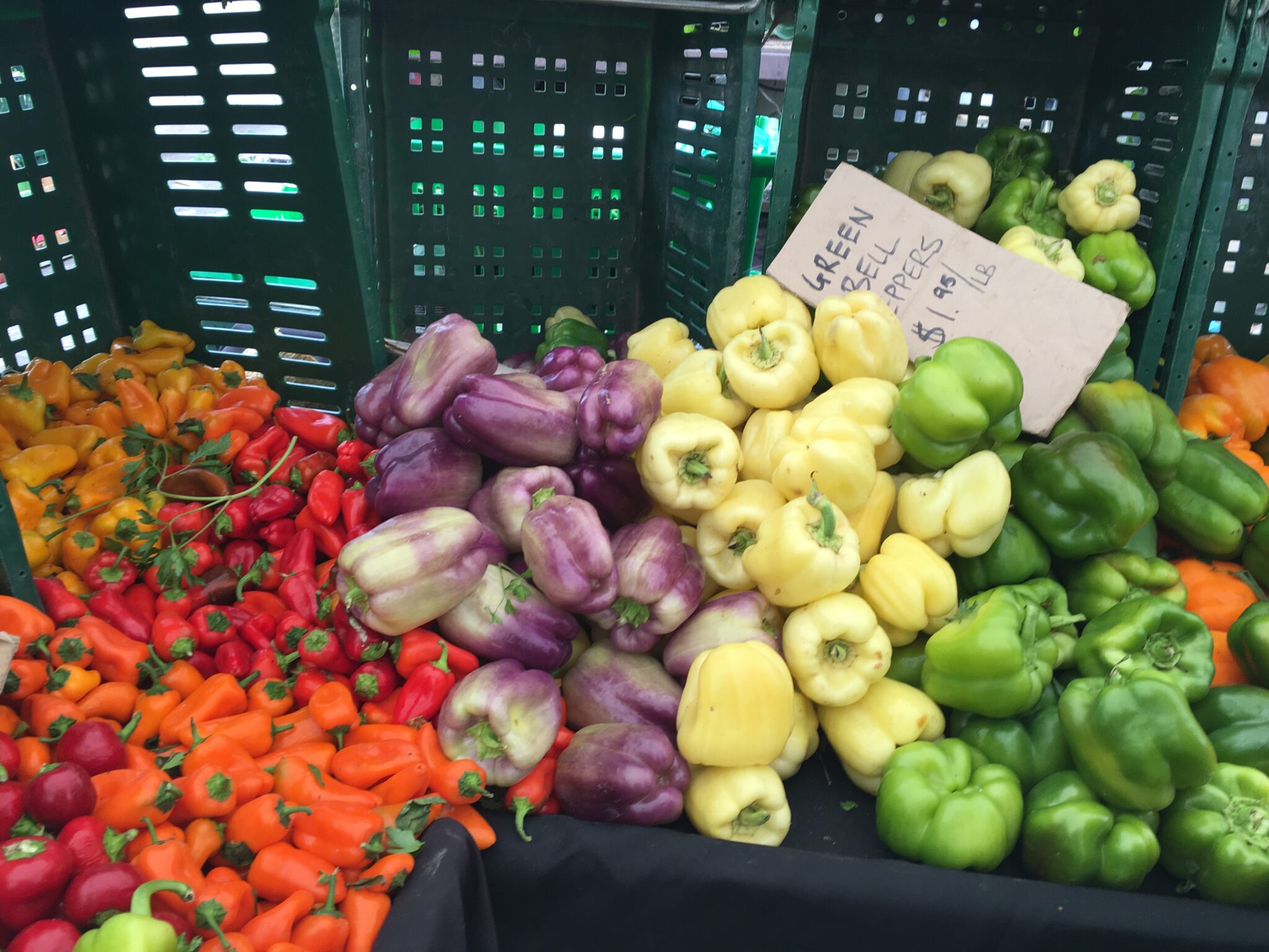 These crunchy, flavorful plant foods have been traced back over the millennia to their roots in South and Central America, where Columbus so delighted in them that he brought the flavorful vegetable back to Europe in 1493. Since then, they have traveled around the world and have been celebrated in many traditional cuisines, such as Italian, French, Asian, and Greek. Can you even imagine a Greek Salad or Asian stir-fry without the pizzazz of a pepper? Green, red, white, yellow, orange, purple, brown and even black—bell peppers (Capsicum annuum) come in a rainbow of shades, as well as sizes. I love these pictures of the colorful bell peppers I have found at my local farmers markets. I always grow bell peppers in my summer garden each year too.