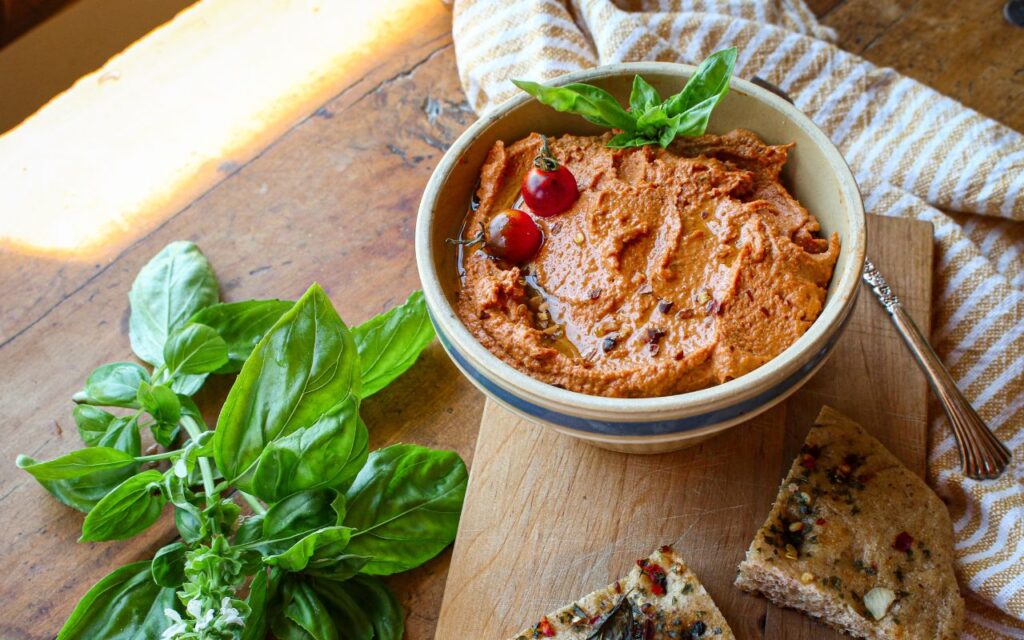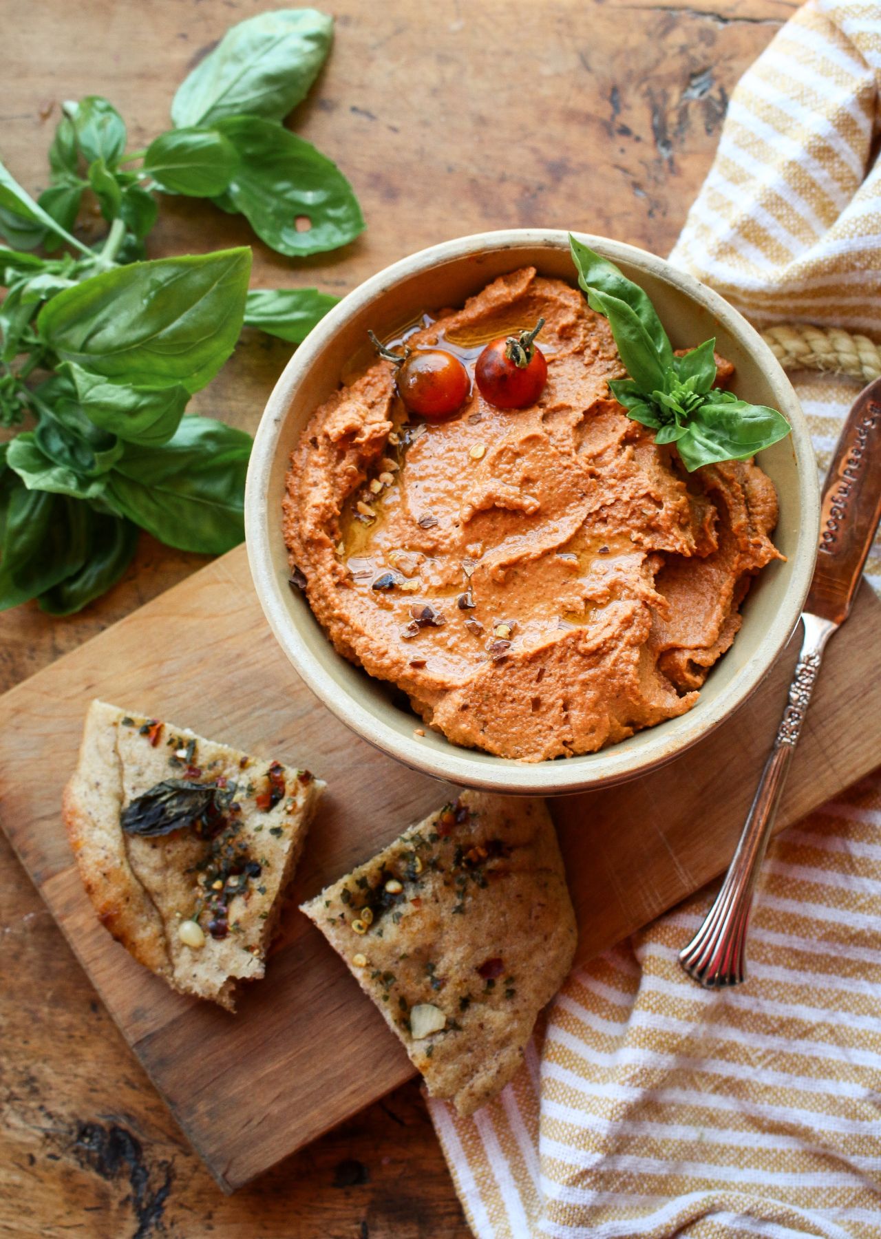 Fill your foods with the essence of spice. It’s simple! Just take this classic Mediterranean dip, which originates from Syria and is traditionally served in Palestinian and Lebanese cuisine. The rich color and flavors of this Easy Classic Muhammara come from roasted red pepper, walnuts, spices, and pomegranate molasses–a pomegranate juice concentrate featured in many Middle Eastern dishes. I’ve had a chance to enjoy traditional Muhammara in my travels in the Mediterranean and Middle East, and learned how to make it during my work as a nutrition consultant for the nonprofit traditional food organization, Oldways. Every time I serve this muhammara recipe, I get so many compliments and inquiries on how to make it. You can find muhammara dip in well stocked Mediterranean stores and restaurants, but it’s also really easy to make it at home from scratch.