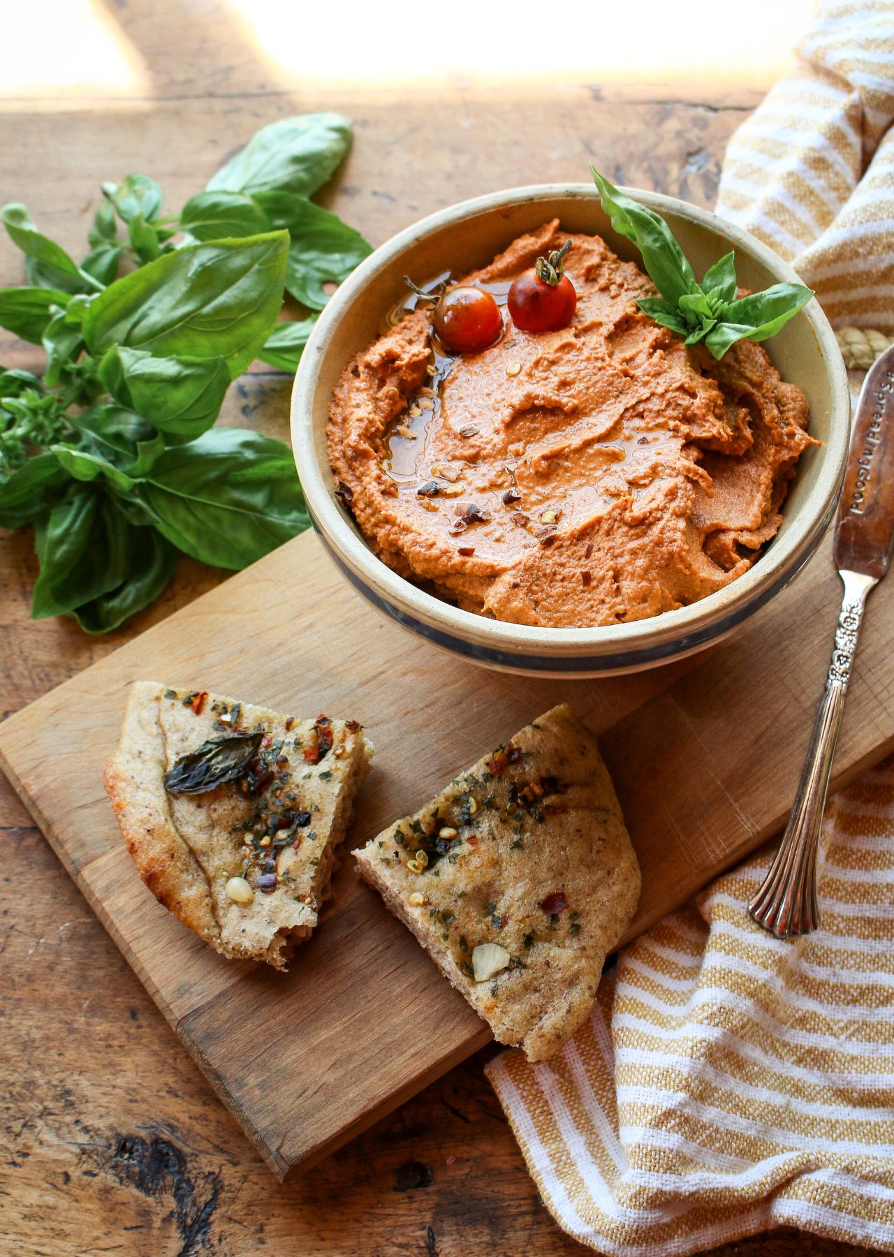 Packed with nutrition–plant protein, healthy fats, vitamins, minerals, fiber, and phytochemicals–this Mediterranean dip is a wonderful addition to your appetizer lineup. Once you have a batch whipped up, it lasts several days in the fridge. Serve it with whole wheat pita and vegetables as a dip, or as a spread in sandwiches and wraps. And this recipe offers a naturally vegan and gluten free Muhammara option, too.