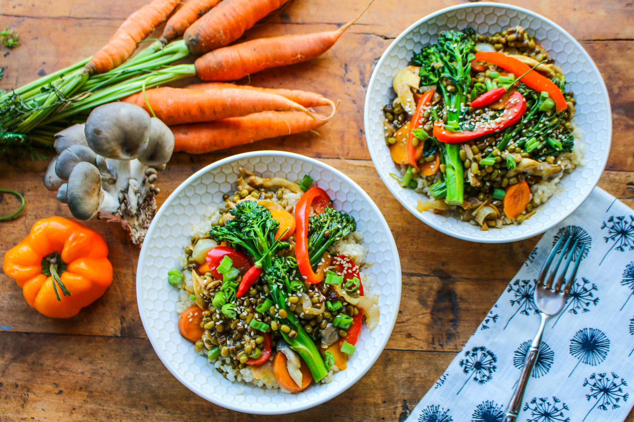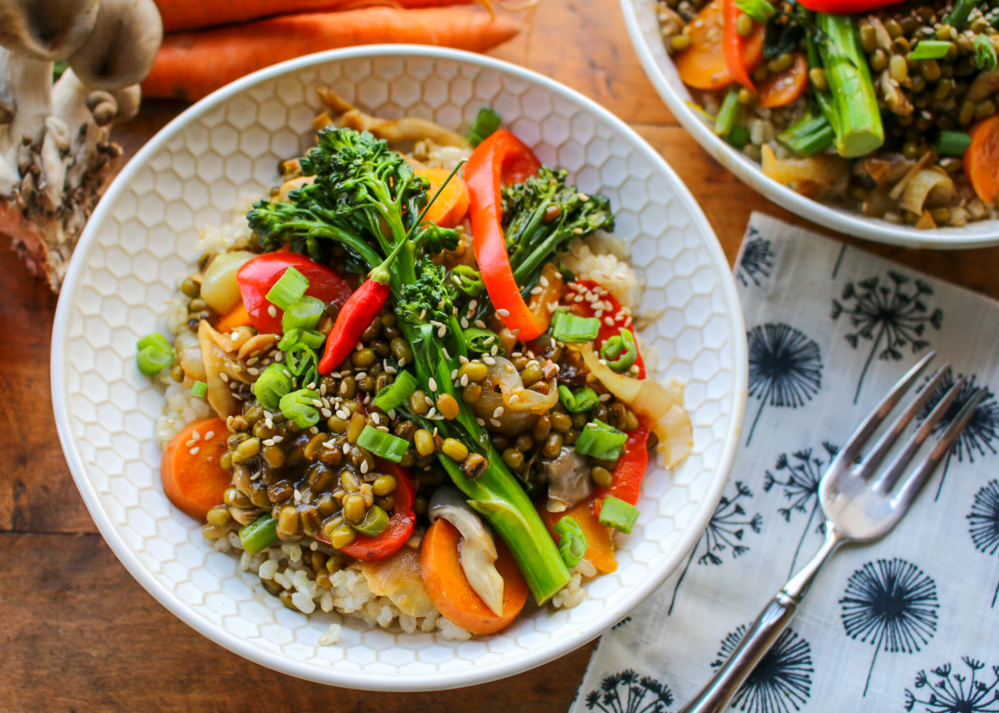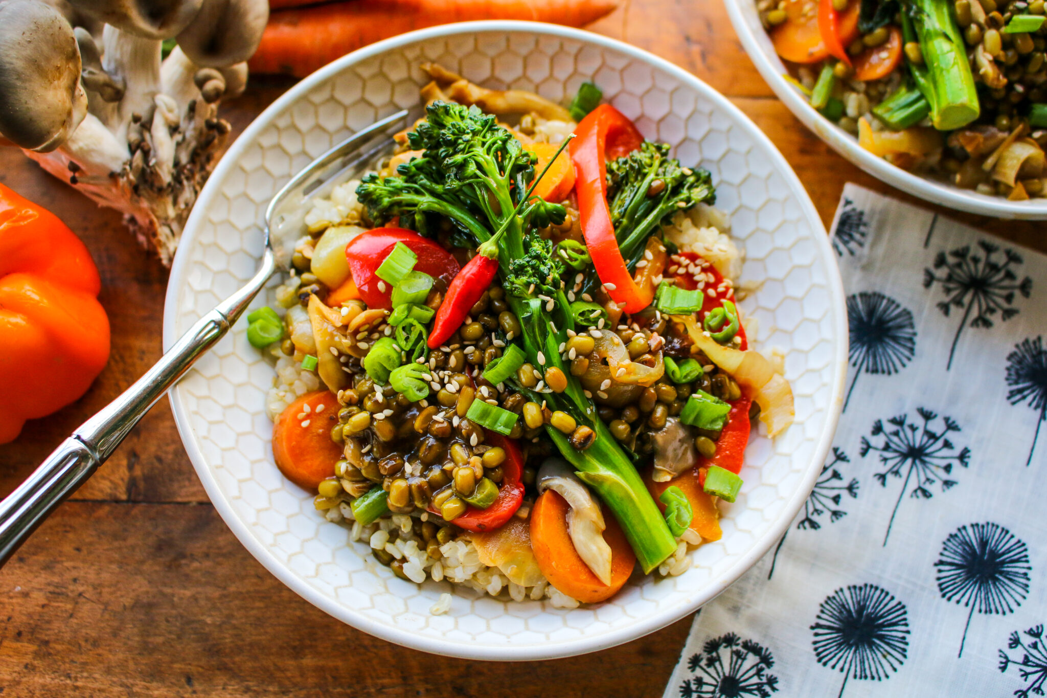 - Meanwhile, cook mung bean vegetable stir-fry.