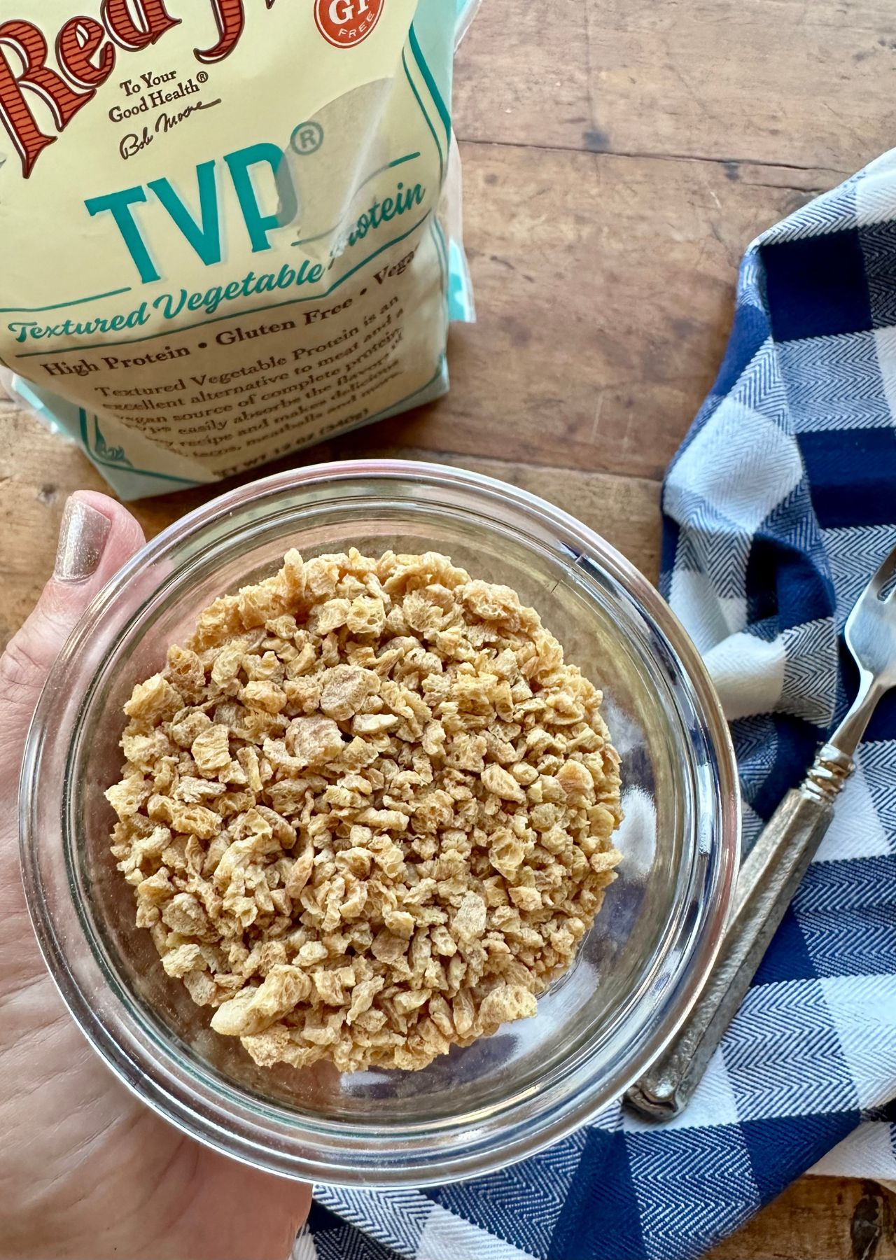 - 1 ½ cups TVP (textured vegetable protein), dried