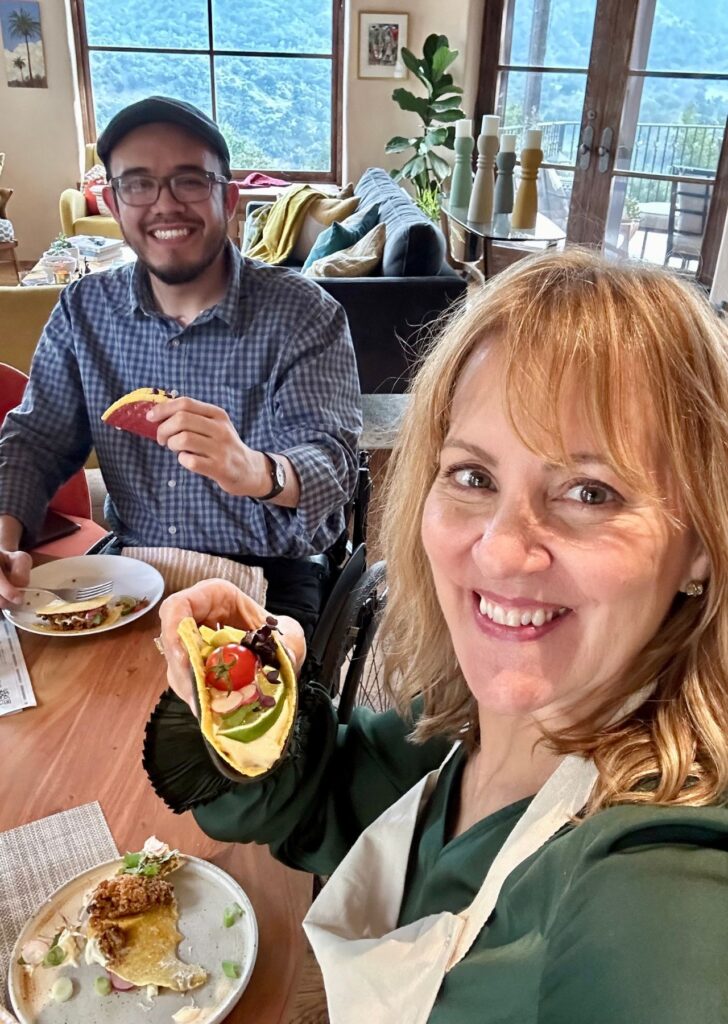 I bought these adorable hand-made pottery taco holders from a local artist in New Orleans. It’s really helpful to use taco holders for premaking tacos, because it keeps all the ingredients neatly contained. Try these ceramic taco holders I found on Amazon here.