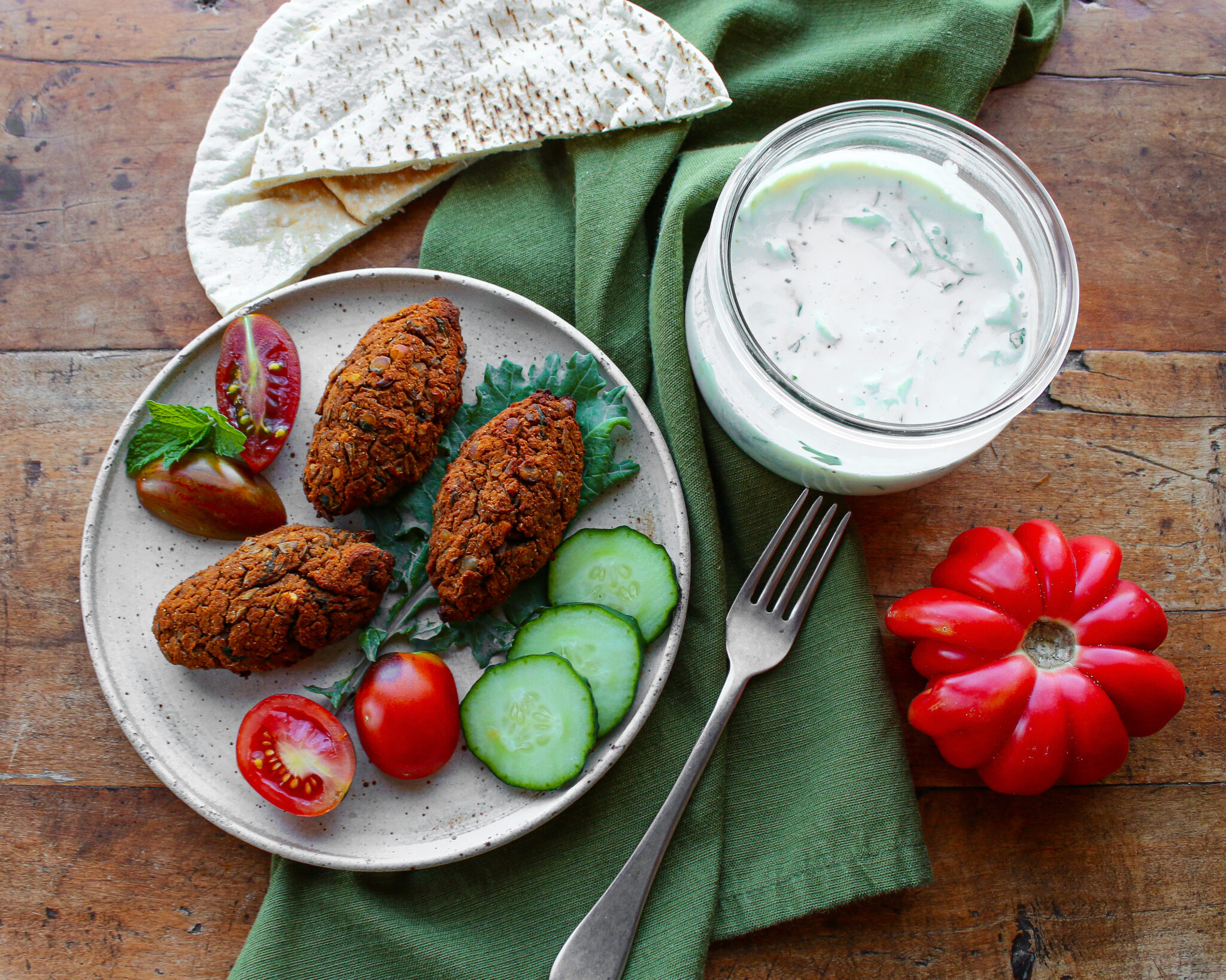 This super simple 5-minute Easy Vegan Tzatziki Sauce is based on six ingredients, including vegan cultured yogurt, cucumbers, garlic, herbs, and lemon. Serve it with pita, tabouleh, or falafels.