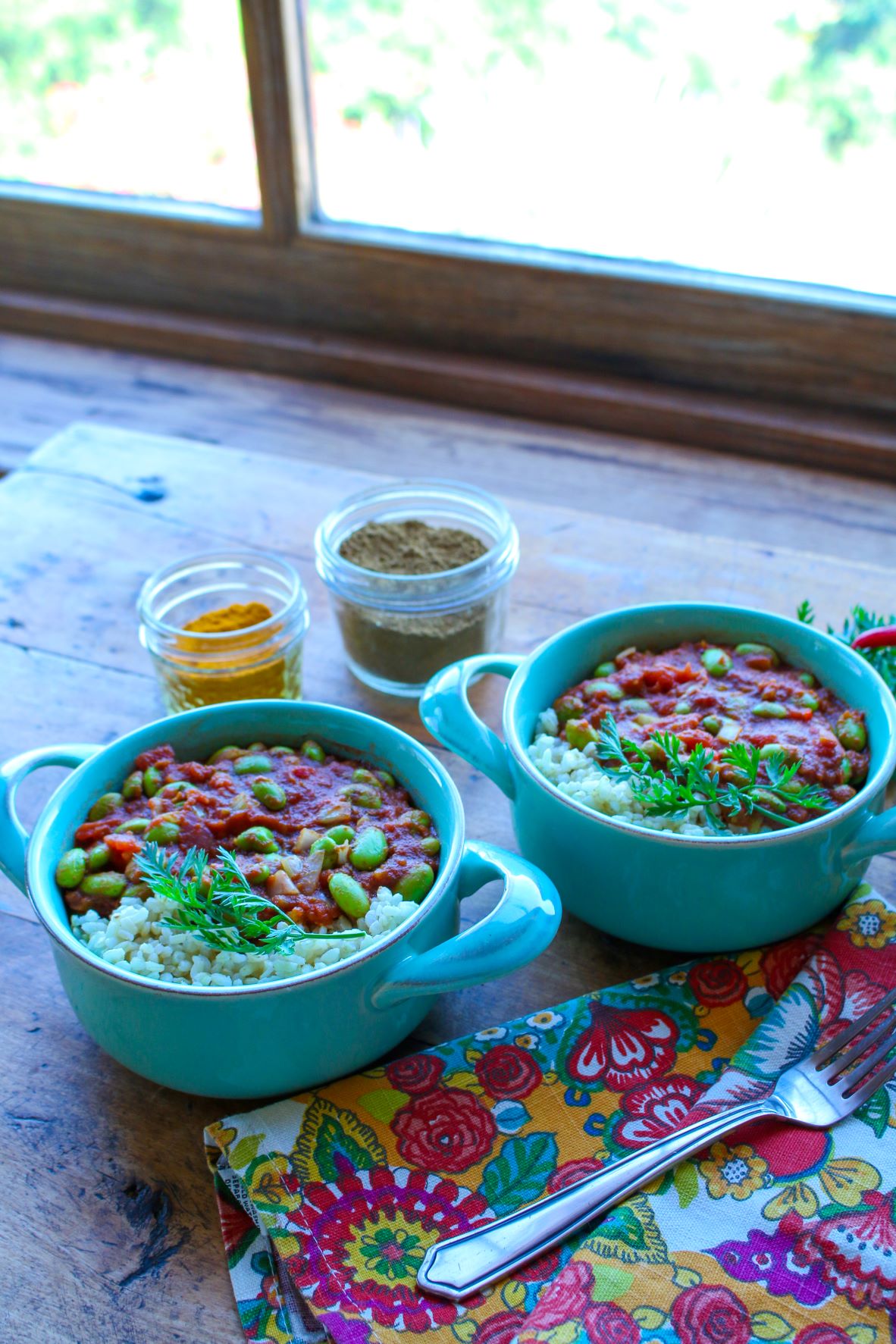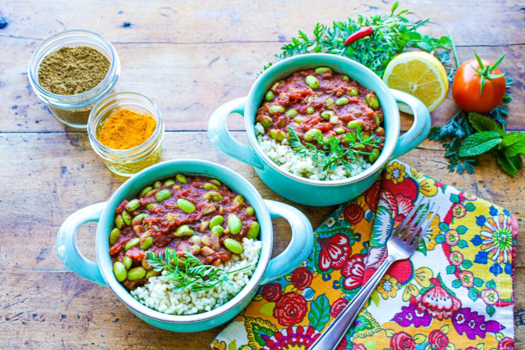 This healthy, delicious, vegan, gluten-free recipe for Edamame Masala with Brown Rice can be prepared in just over 30 minutes based on many shelf-stable, nutritious ingredients.
