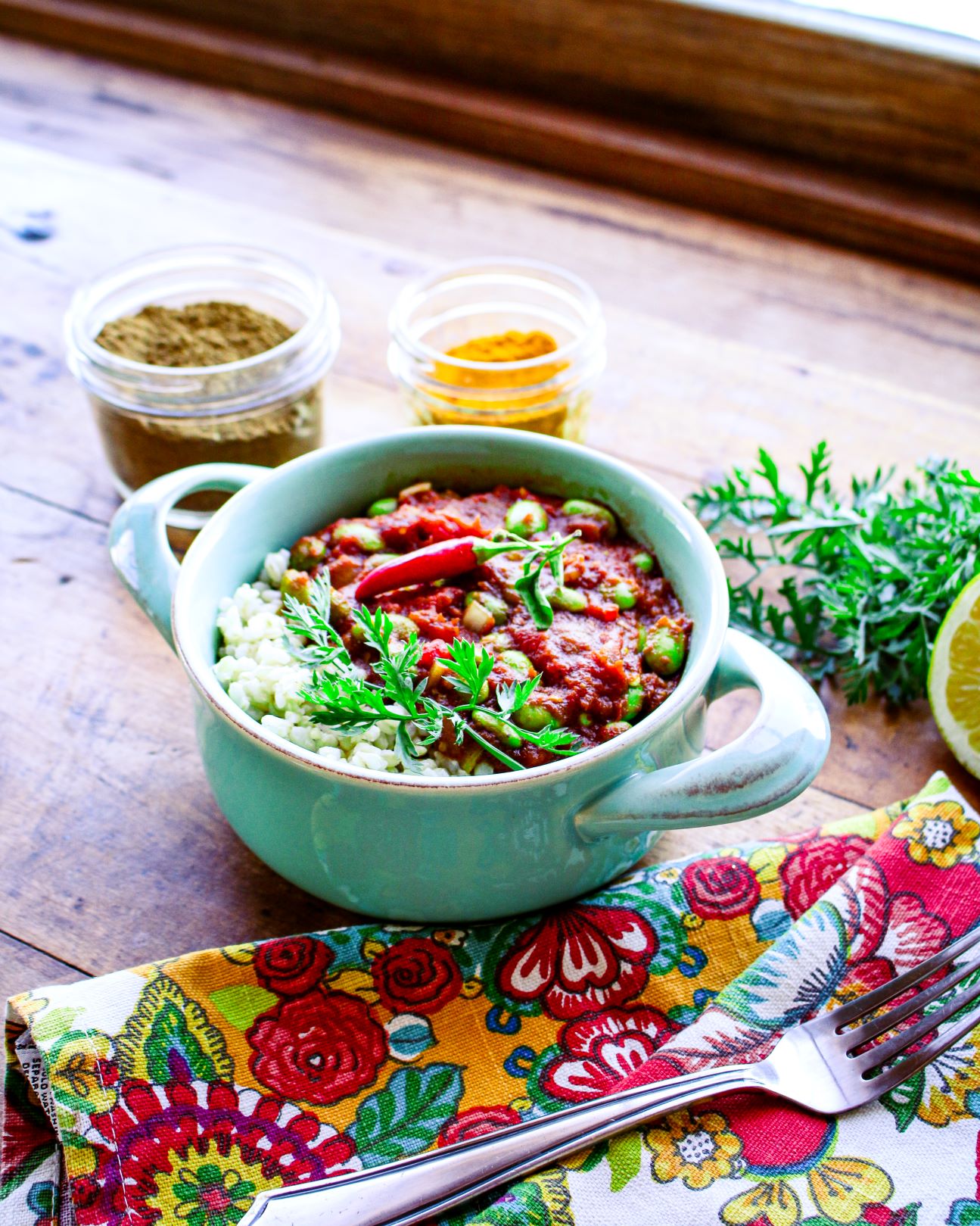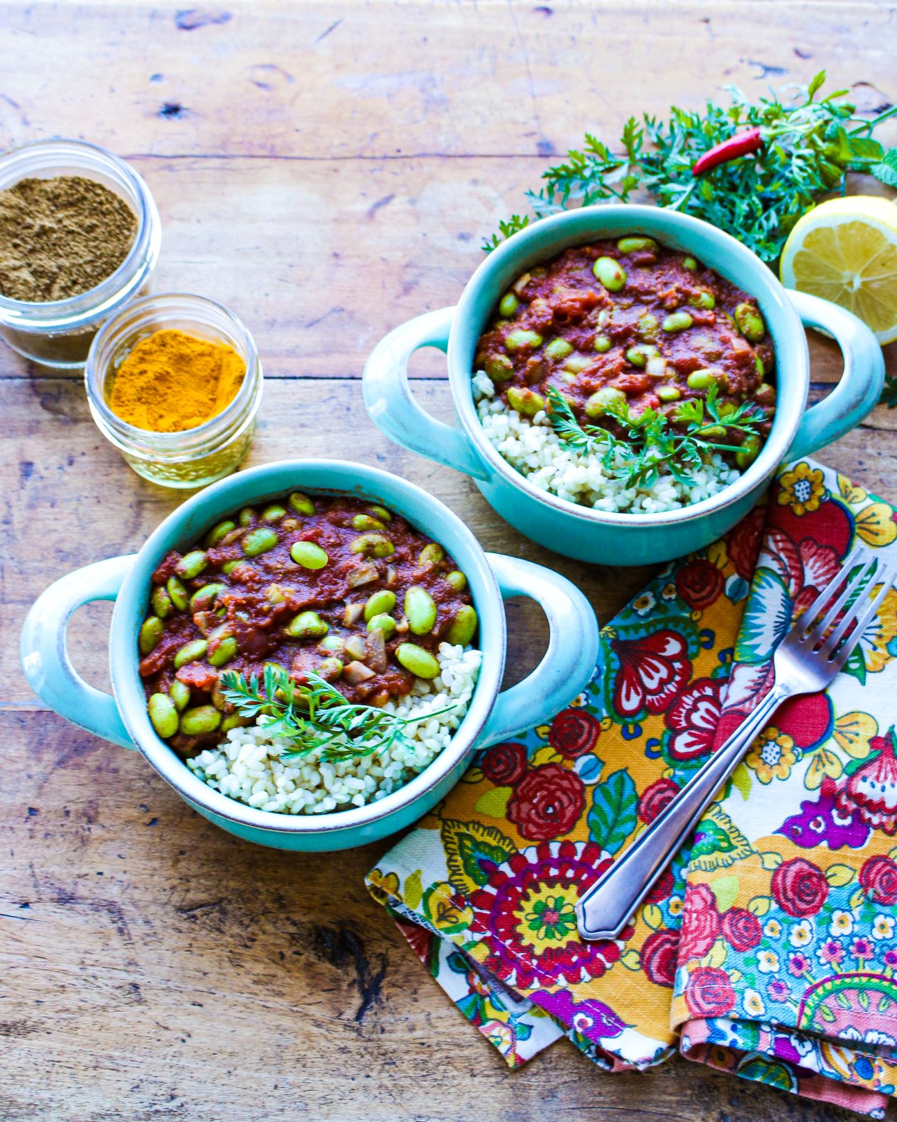InstantPot Directions: For steps 2-6, add all ingredients in these steps to the Instant Pot and push the “Bean/Chili” setting. Serve with cooked brown rice. Note: You can use the rack and cook the rice in a separate container above the edamame masala.