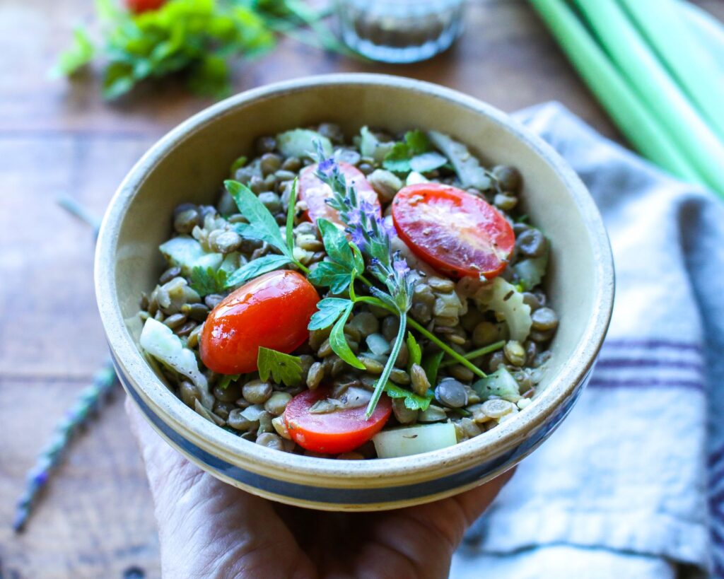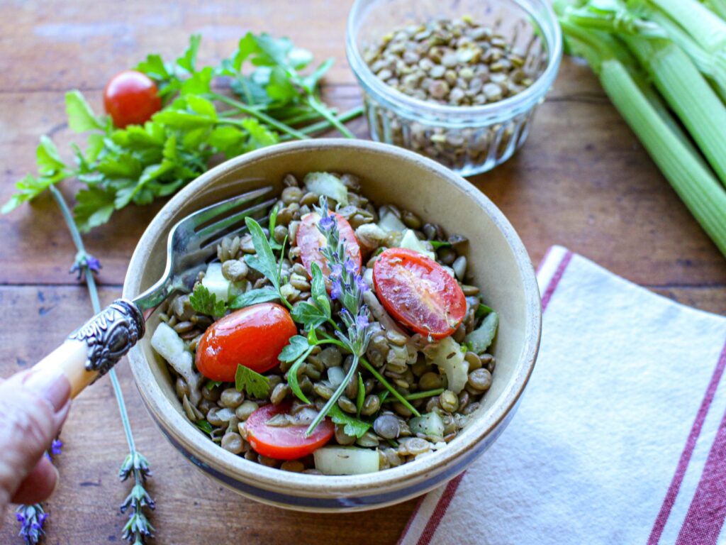 - Add the dressing to the lentil mixture and toss. Taste and season with sea salt, if desired. Chill until serving time.