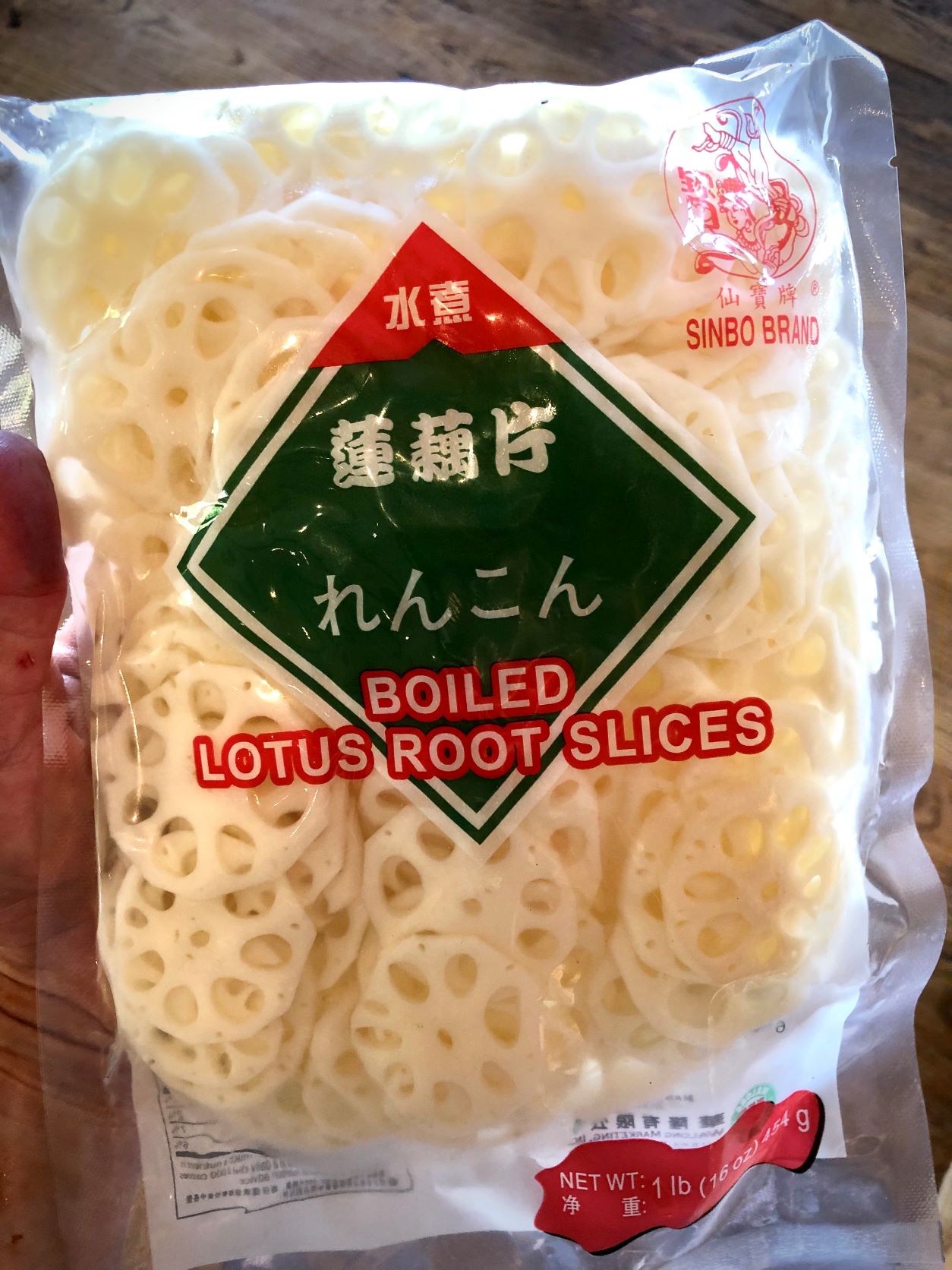 Boiled, sliced lotus root is available in many Asian markets.Just open the bag, drain the liquid, and add it to your recipe.Fresh lotus root for sale at an Asian market in Seattle. Just peel, slice, and boil in water.