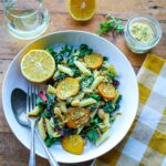 In just 20 minutes, you can get this meal-in-one, budget-friendly recipe on the table. It’s based on only 8 ingredients (not including pantry staples), many of which (beans, pasta, garlic, onions, oregano) can be stored in your kitchen. Just add the fresh, seasonal ingredients of beets, chard, and lemon, and you have a wonderful one-dish meal for your busiest nights of the week. I turn to this recipe all the time, because I grow chard in my California garden all winter long. It’s one of the easiest vegetables to grow, and gives back such a rich nutrition bonus. I also have beets growing each year. You can swap different types of chard or even spinach or mustard greens for the chard, and you can swap golden beets for red beets, if you prefer. You can also try different beans, such a kidney beans, black beans, or chickpeas. Rich in protein, fiber, vitamins, and minerals, this is a plant-powered meal that keeps giving back.