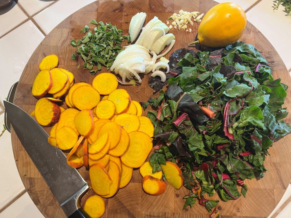 This classic, plant-based recipe is based on two cool weather staples: beets and Swiss chard. Beets are famously bright red, however other varieties include golden beets, which are a deep yellow-orange shade. Swiss chard can be colorful, with deep green leaves, and multi-colored, rainbow-hued stems. Available year round in many growing regions, these colorful plants are packed with fiber, vitamins, minerals, and antioxidant compounds. The beans add even more fiber, vitamins, and minerals, as well as protein. This recipe is inspired by the classic Italian food pairing of greens, beans, and pasta. It’s like a plant-based combination made in heaven! This recipe for Golden Beets and Chard with White Beans and Penne is completely plant-based (vegan), and you can easily make it gluten-free by using gluten-free pasta.