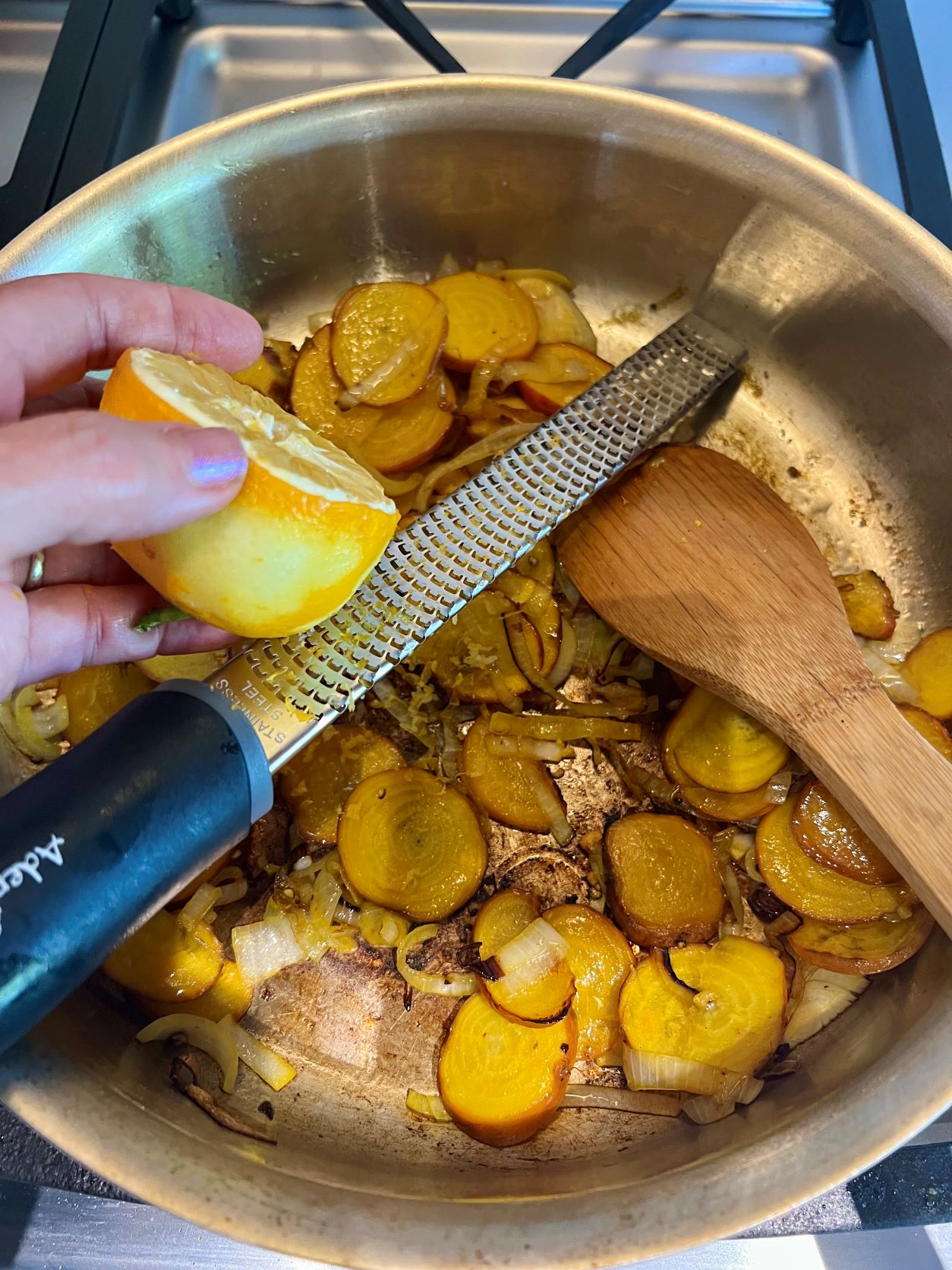 Add pepper, salt, lemon juice and zest, and 1/4 cup reserved pasta water, and sauté for about 13 minutes, until beets are tender yet slightly crisp.