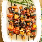 Put together these fresh, flavorful vegan Hawaiian Tempeh Barbecue Skewers featuring tempeh, pineapple, bell pepper, and a fabulous Hawaiian Marinade.