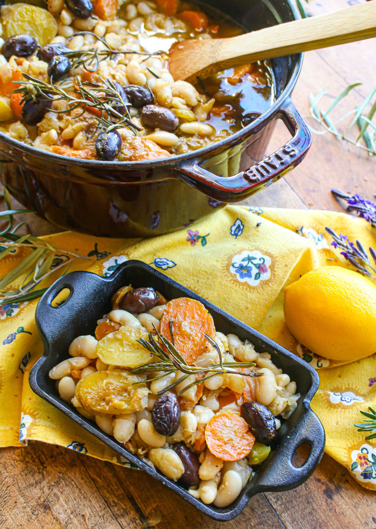 This rustic, hearty Vegan Heirloom Beans Cassoulet powers up on heirloom beans, carrots, parsnips, olives, and rosemary for a delicious, budget-friendly, vegan, gluten-free vegetable casserole packed with nutrition.