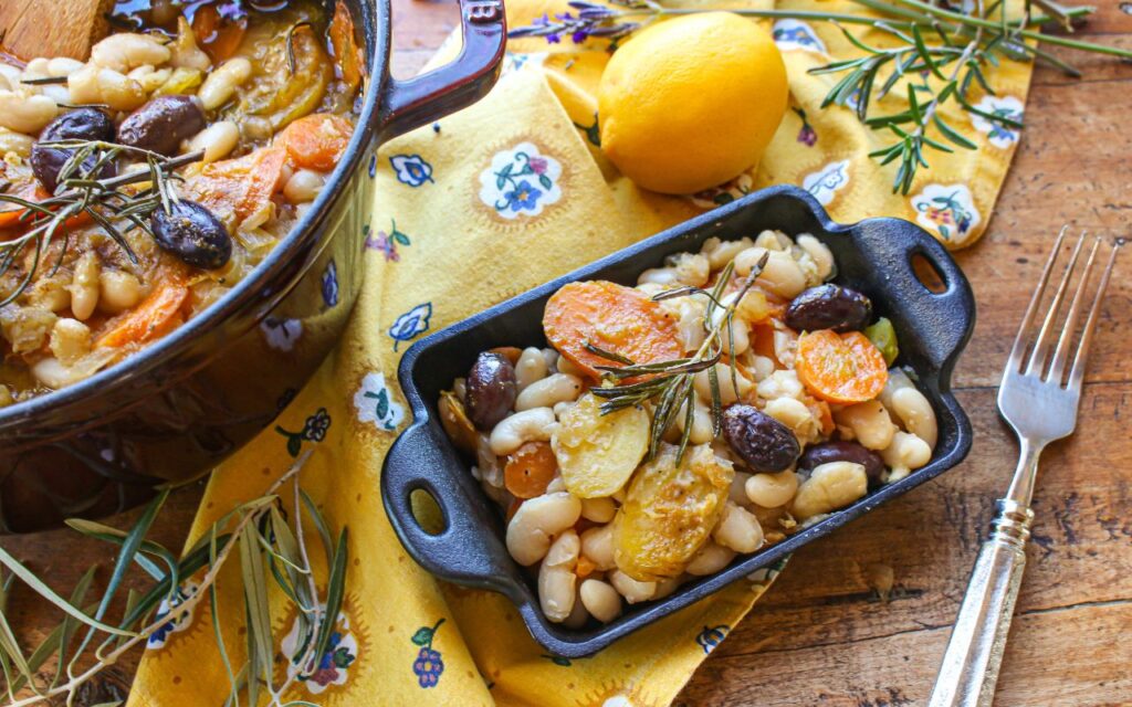This delicious bean vegetable casserole calls upon the French tradition of cassoulets—the forerunners of casseroles—which are often based on savory pots of beans and meats. However, you can showcase the beans and veggies and skip the meat altogether, as I do in this classic Vegan Heirloom Beans Cassoulet recipe, which is completely plant-based (vegan) and gluten-free. Try unusual dried heirloom beans—Eye of the Goat, Rattlesnake, Flageolet beans—or something you can find anywhere, such as lima or cannellini beans. All you have to do is soak the beans overnight, cook them with onions, garlic and root vegetables, drizzle with olive oil and bake to create this truly rustic, hearty vegan casserole packed with plant protein. This is one of my favorite recipes for one pot meals, as the beans and vegetables create a delicious and nutritious combo, especially when paired with crusty toasted whole grain bread. Make a Slow Cooker or Instant Pot Heirloom Beans version of this recipe, by following the instructions below.