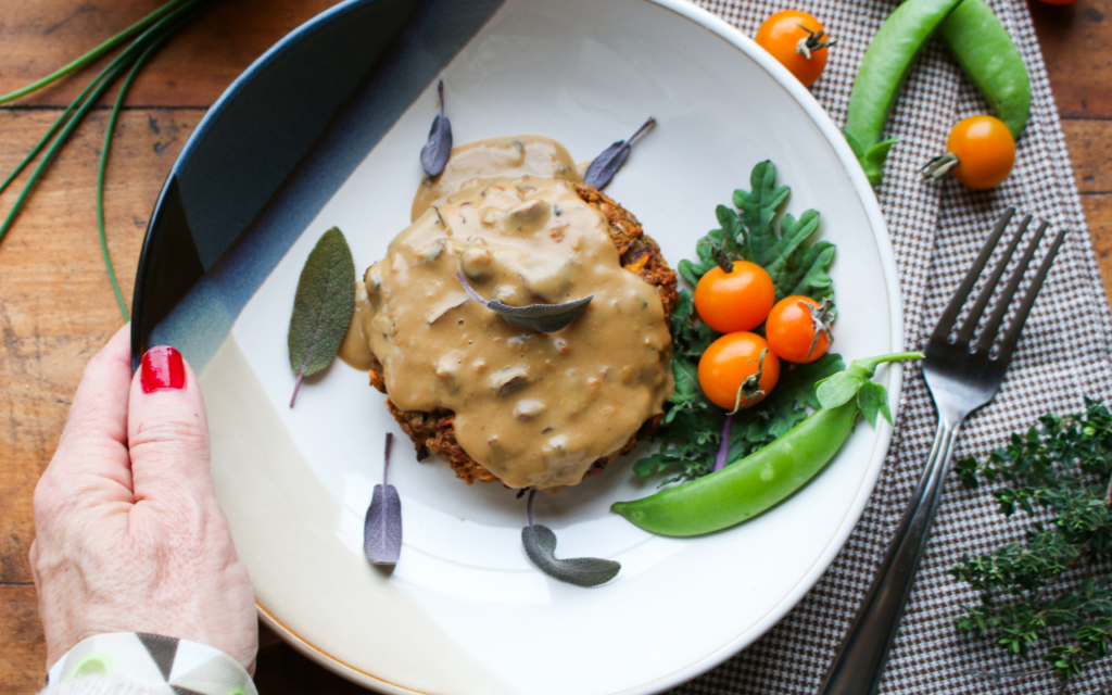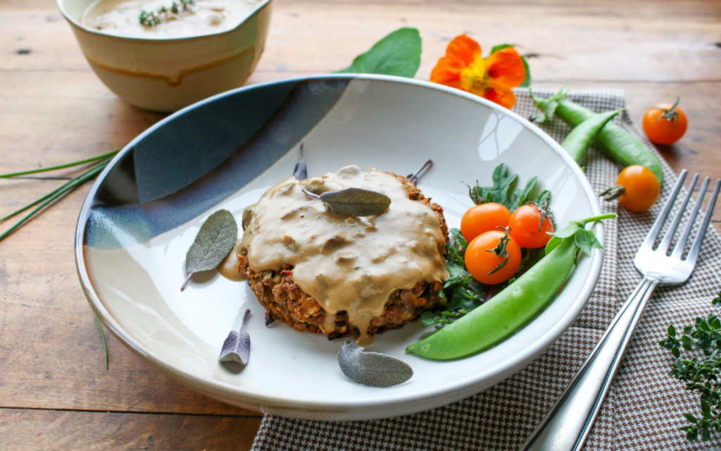 These easy, healthy vegan Herbed Lentil Patties with Mushroom Sauce are pure comfort food bliss! Just mix up the batter and bake them in the oven, then serve with a savory creamy mushroom sauce.