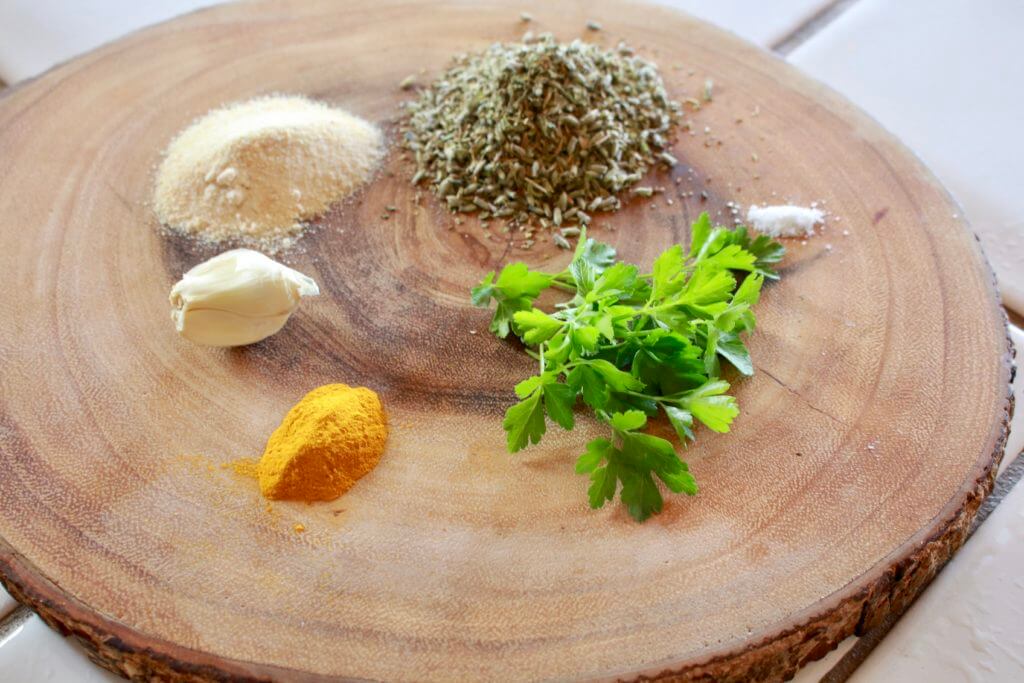 To make Broth: Combine water, garlic powder, seasoning blend, salt, parsley, turmeric, and fresh garlic in a large pot. Add soy sauce, balsamic vinegar, and tomato paste to the pot, mixing well until it comes to a simmer. Cover and reduce to low heat.