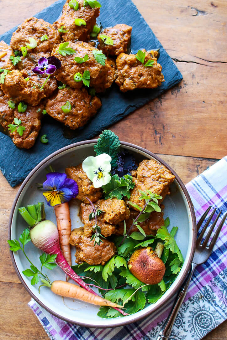 Seitan is a traditional plant-based food made from wheat gluten, known for its dense, chewy texture and impressive protein content. Originating centuries ago in East Asian culinary traditions—particularly in China and Japan—seitan has long been used as a meat alternative in vegetarian cooking, especially in Buddhist cuisine. Nutritionally, seitan is rich in protein and low in fat, making it a popular choice for plant-based eaters seeking hearty, satisfying meals. In the kitchen, seitan is incredibly versatile—it can be sliced, crumbled, grilled, sautéed, braised, or simmered in sauces, making it ideal for dishes like stir-fries, sandwiches, tacos, stews, and more. You can find plain and seasoned seitan in most well-stocked markets, but you can also make it yourself very inexpensively.