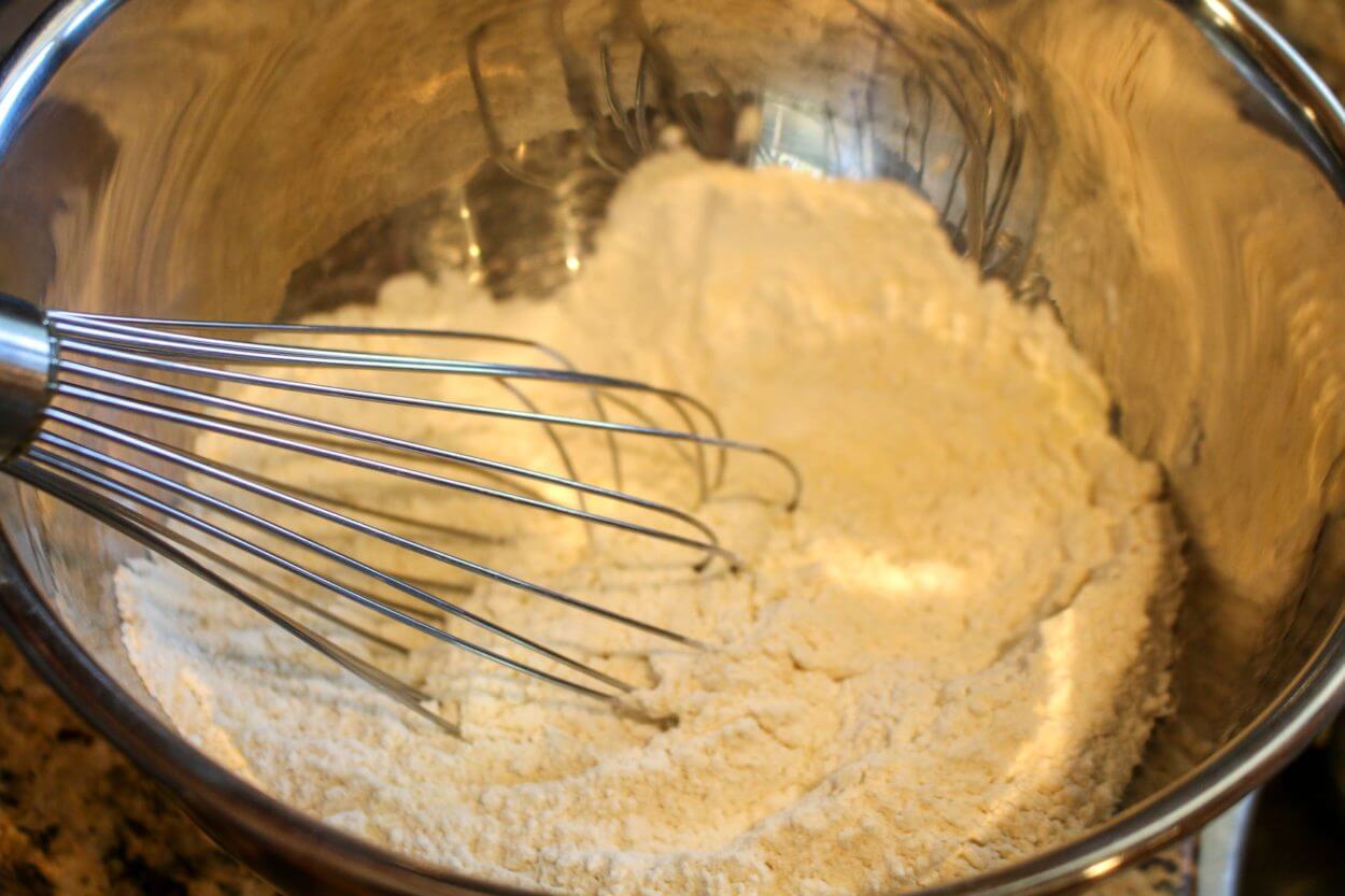 3. Mix Flours. All you do is simply mix those flours together with a fork or whisk to blend.
