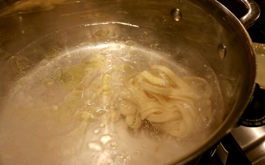 Finished sliced pasta, ready to cook!Cook the pasta in bolding water with salt and EVOO.