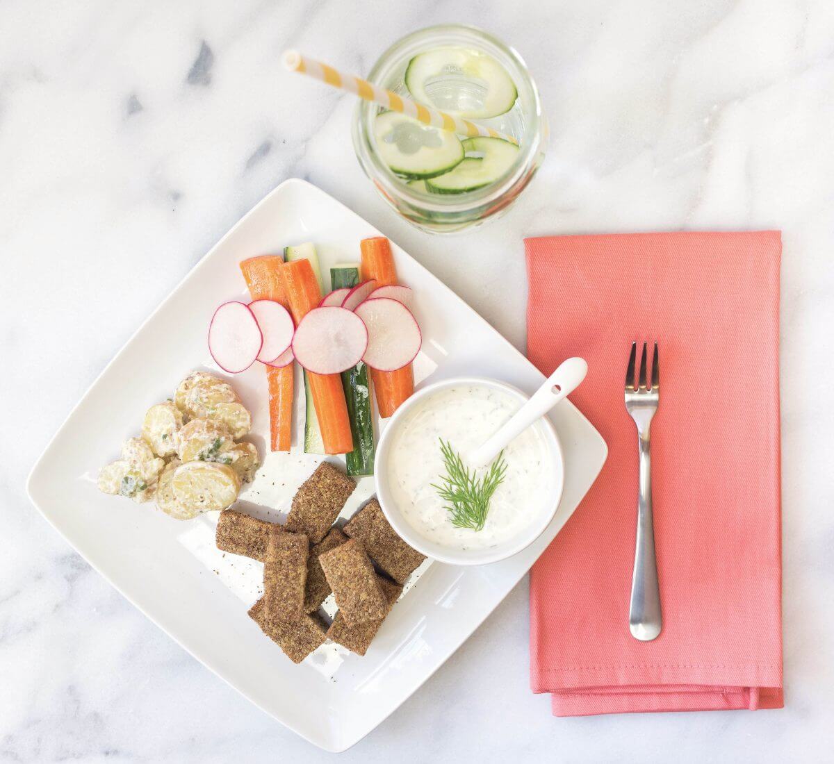 Let cool for a few minutes. Serve with vegan ranch dressing and veggies sticks!