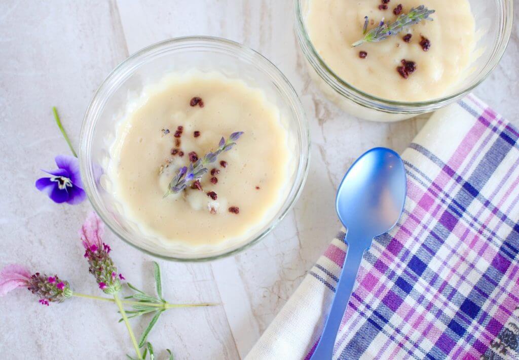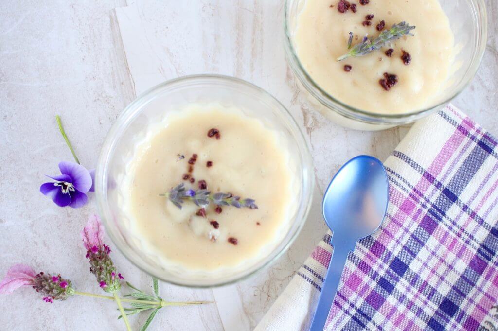 I remember my mom making simple, home-made puddings out of a few, very basic ingredients—milk, sugar, vanilla, and cornstarch. This inspired me to turn her classic recipe into an easy, plant-based (vegan) pudding dessert: Lavender Sea Salt Vanilla Cream. The classic pudding recipe arose out of the British tradition of making something out of nothing. While the first puddings were made out of savory ingredients, they later started including fruits and nuts. American boiled sweet puddings started showing up in the 19th century, making them one of our favorite, classic comfort foods. One of my father’s all time favorite foods is tapioca pudding—a derivation of the classic American boiled pudding.
