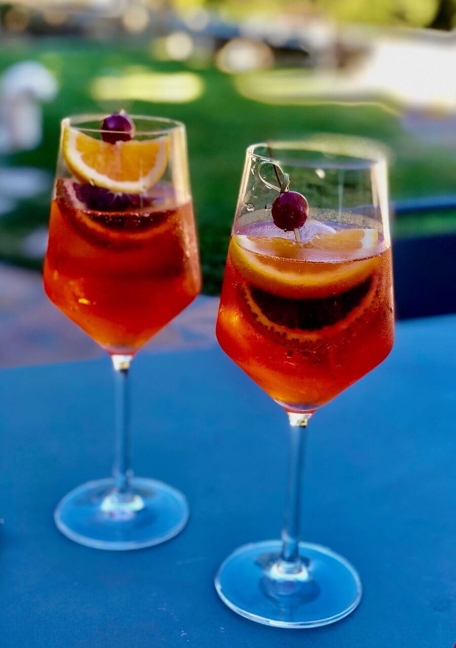 What is an Aperol Spritz? If you’re looking for the cocktail du jour, then look no further than the delightful drink called Aperol Spritz. I first tried this light, refreshing alcoholic beverage in Pantelleria, a Sicilian Island in Italy, about 13 years ago. And since then I’ve enjoyed it all over Italy, including South Tyrol, Sicily, and Puglia. Aperol Spritz is a drink born in Veneto, Italy, and it was typically served with small appetizers, like olives and sandwiches. One of the most quintessential Italian experiences is to enjoy a bright orange Aperol Spritz served in a tall wine glass on a hot day at an Italian café—especially if it involves looking out over the Mediterranean Sea! Cool and refreshing, this drink is a bit lighter in sugar and alcohol than many cocktails, and it is so refreshing.