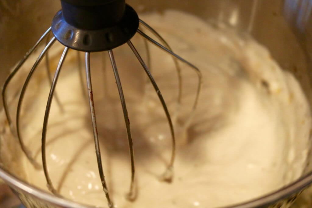 Place aquafaba (bean liquid) and coconut palm sugar (or brown sugar) in a mixer bowl and whip on high (a Kitchen Aid works really well for this) until stiff peaks form, about 5 minutes.