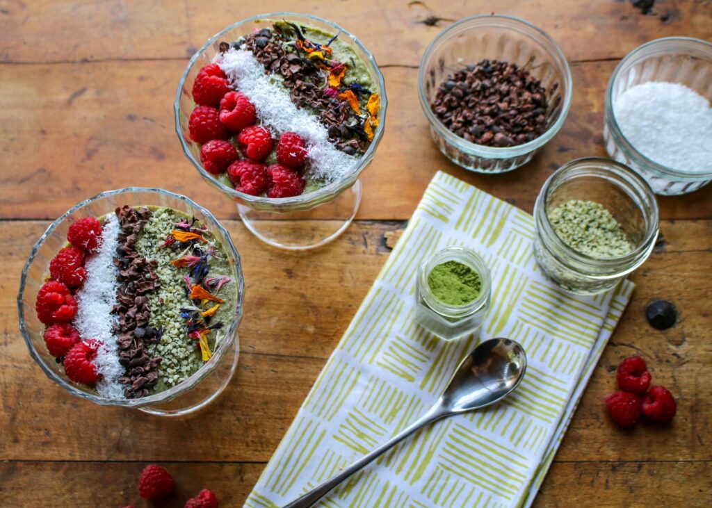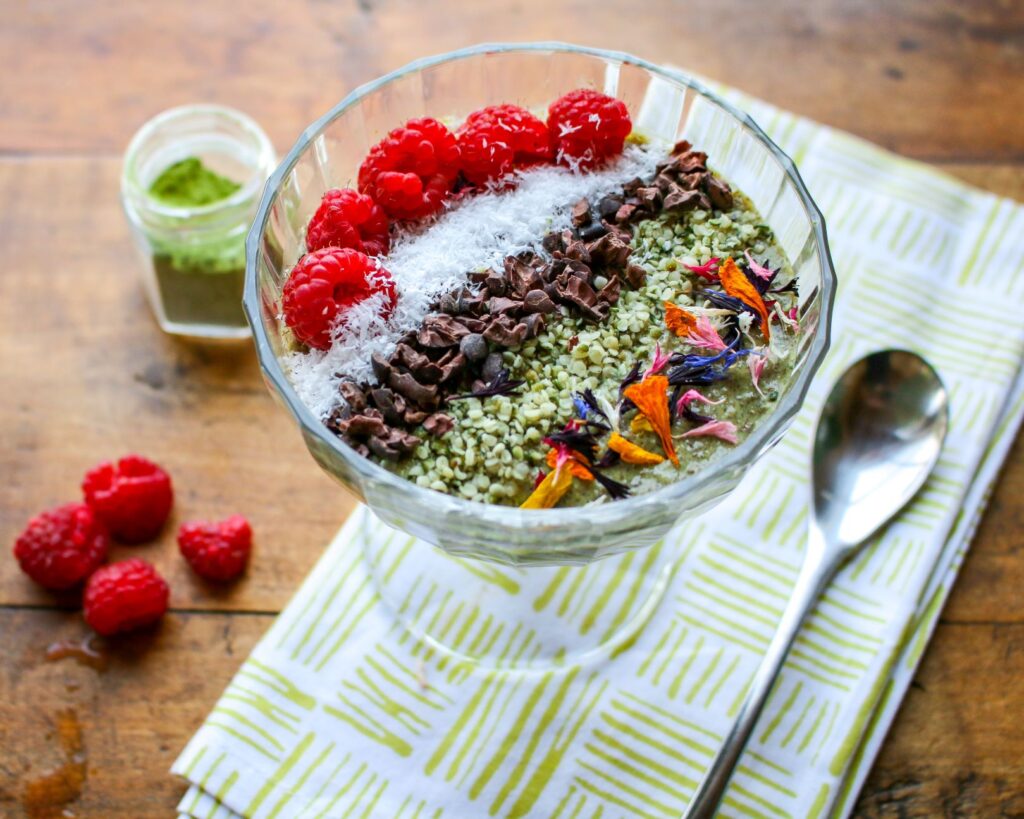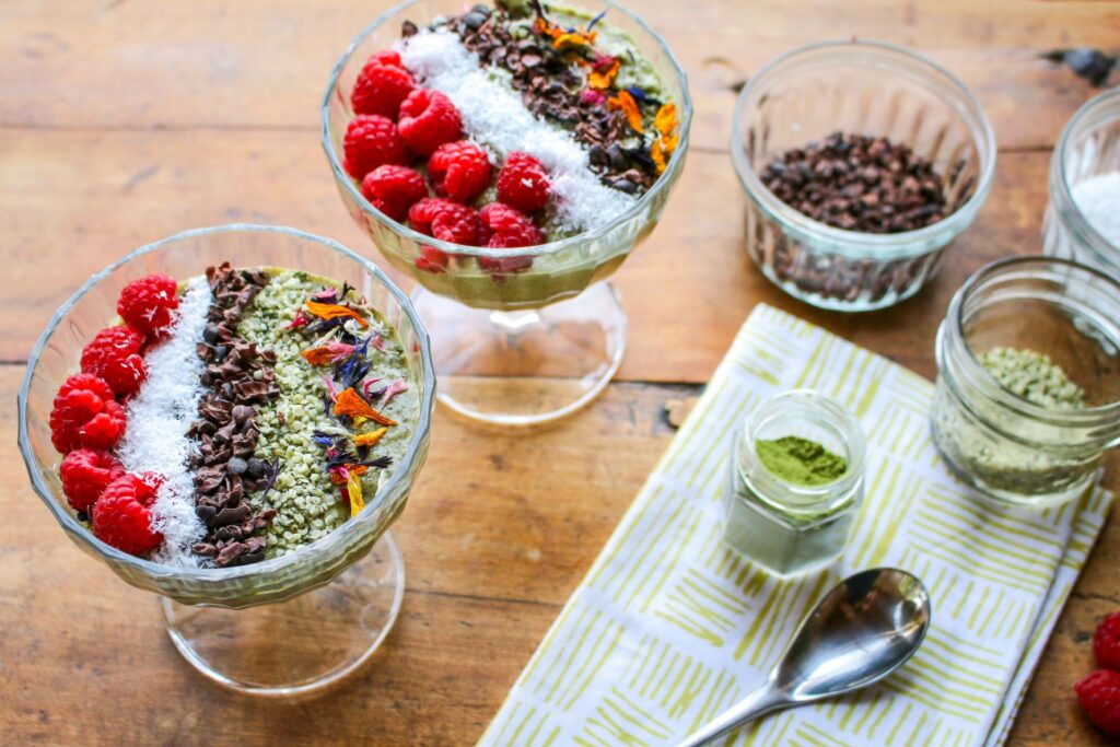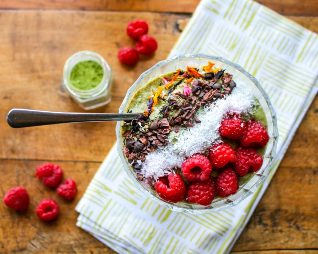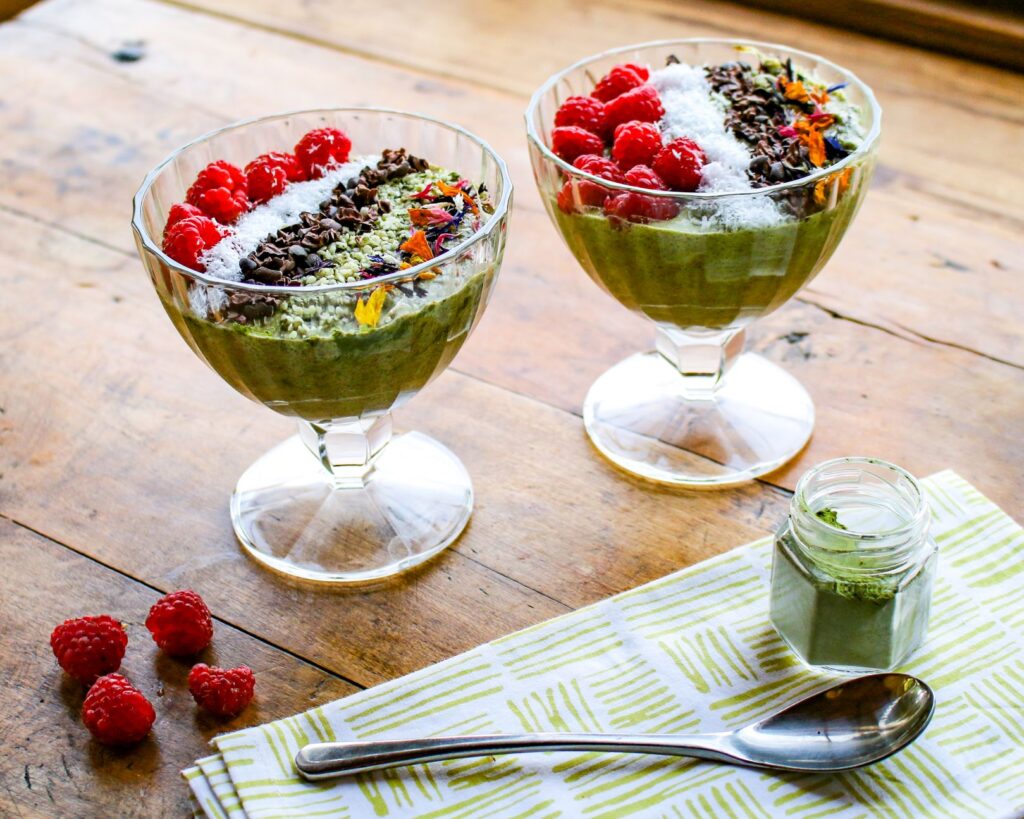 Matcha tea is increasingly available in markets, so don’t be afraid to try it in a variety of recipes, including muffins, nice “cream”, and porridge. The sky is the limit! Start with this easy recipe, which lets the flavors of matcha tea shine right through. It’s a great breakfast, light lunch, or snack.