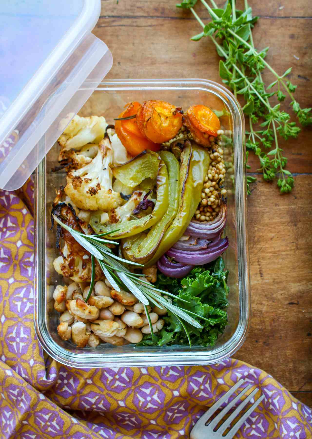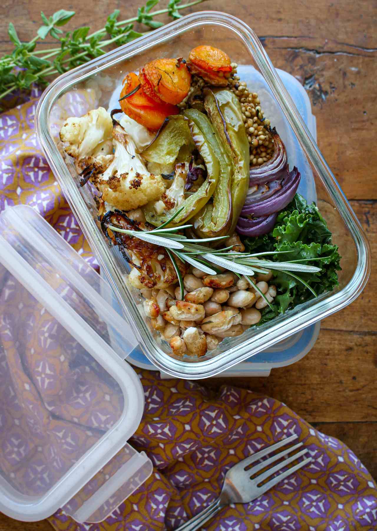 - To meal prep/prepare each salad: In a glass rectangular container, arrange kale, and top with one-fourth of the cooked sorghum and one-fourth of the roasted vegetables and white beans. Garnish with roasted pistachios. Add a lemon wedge. Cover and refrigerate for up to 5 days.