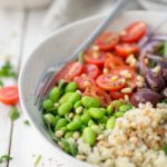 This delicious, Greek-inspired Mediterranean Bowl with Edamame and Quinoa is a nourishing one-dish-in-a-bowl meal for lunch or dinner, or the perfect salad accompaniment for a family-sized meal. Packed with nutrients and flavors, this quinoa bowl recipe will soon be your go-to for the week.
