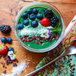 This gorgeous blue-green mermaid smoothie bowl is made with spirulina, chia seeds, banana & citrus. Vegan, gluten-free, healthy, and free of oil, sugar, or salt!
