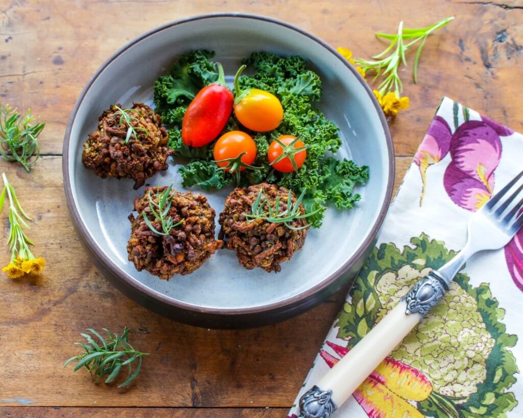 Rich with the umami flavor of mushrooms and lentils, these Mushroom Lentil Vegan Meatballs get a healthful boost by way of high fiber cereal.