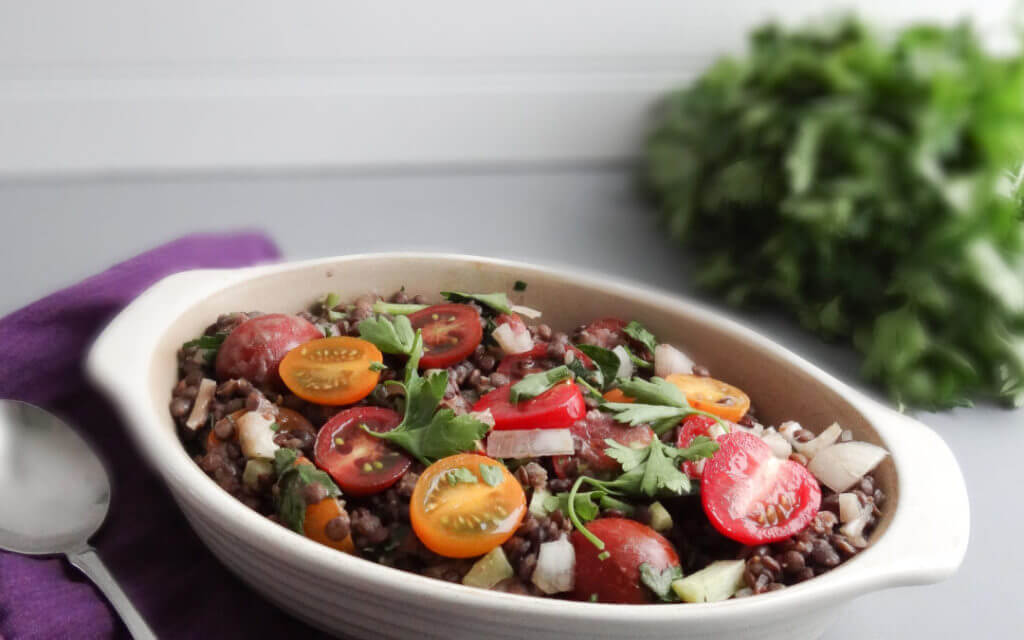 Image: French Green Lentil Salad with Cherry Tomatoes from Plant-Powered for Life, Sharon Palmer, MSFS, RDN
