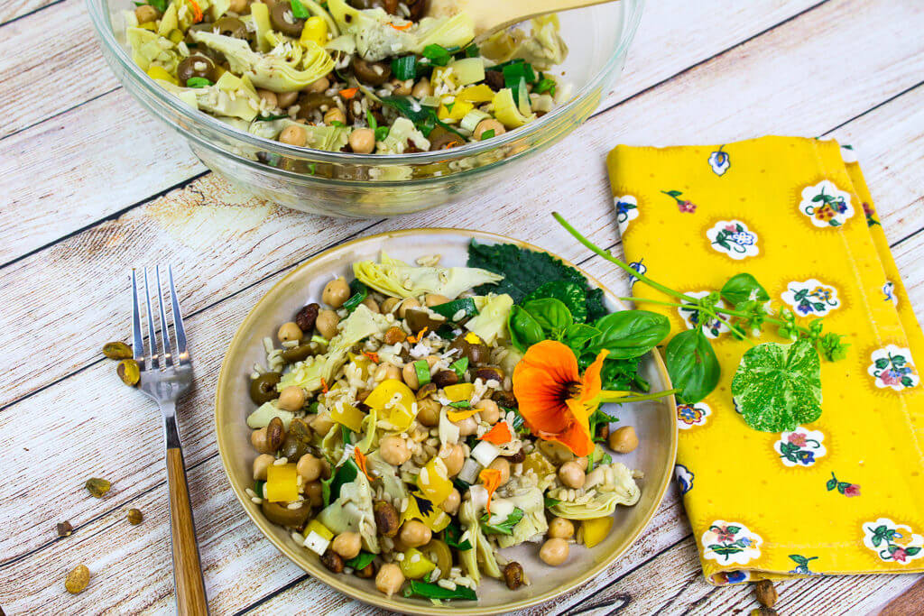 Image: Pomegranate Farro Bowl recipe is featured in California Vegan.