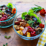 This vegan, gluten-free lentil bowl is filled with the goodness of lentils, squash, mushrooms, pomegranate arils, and pecans.