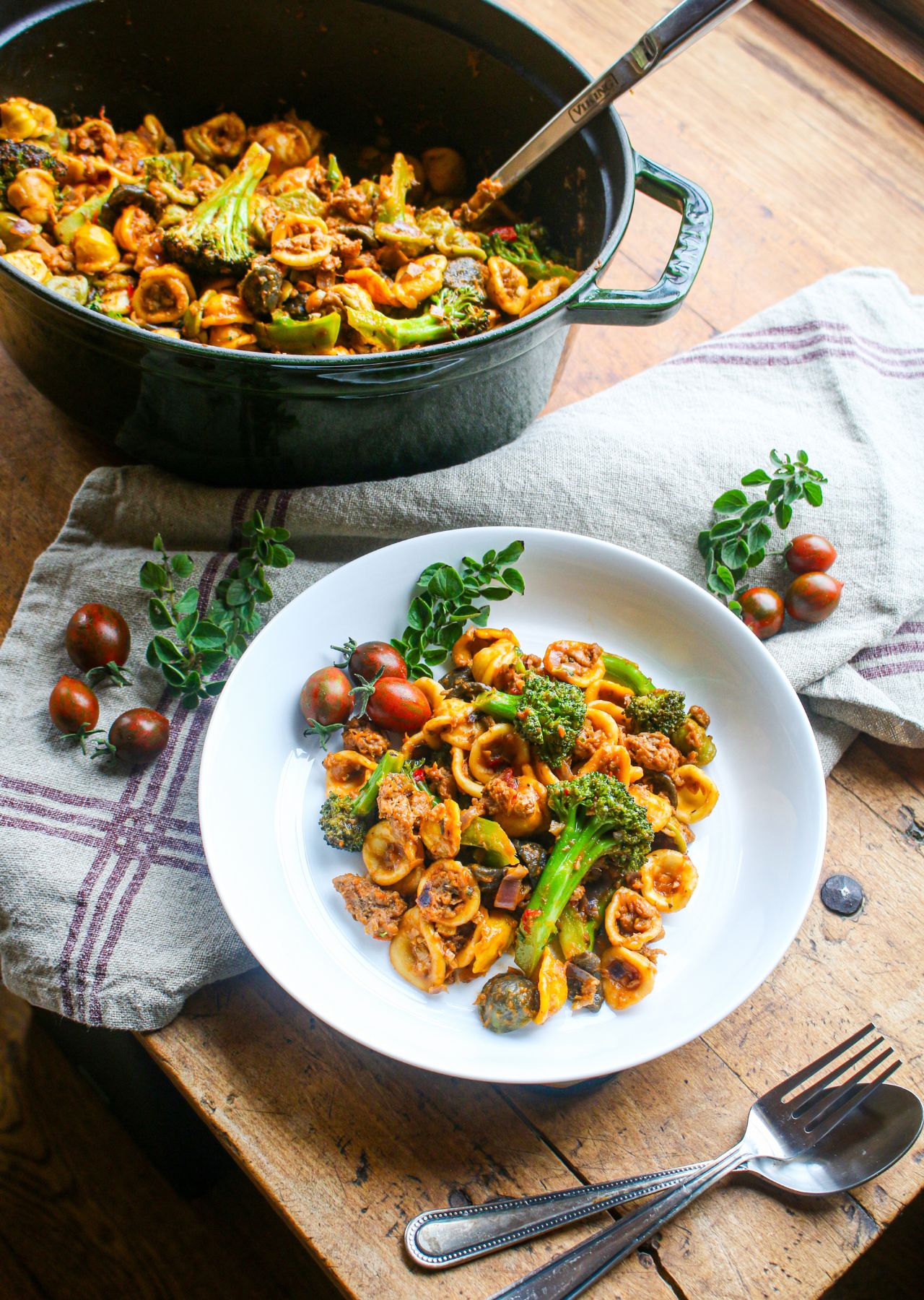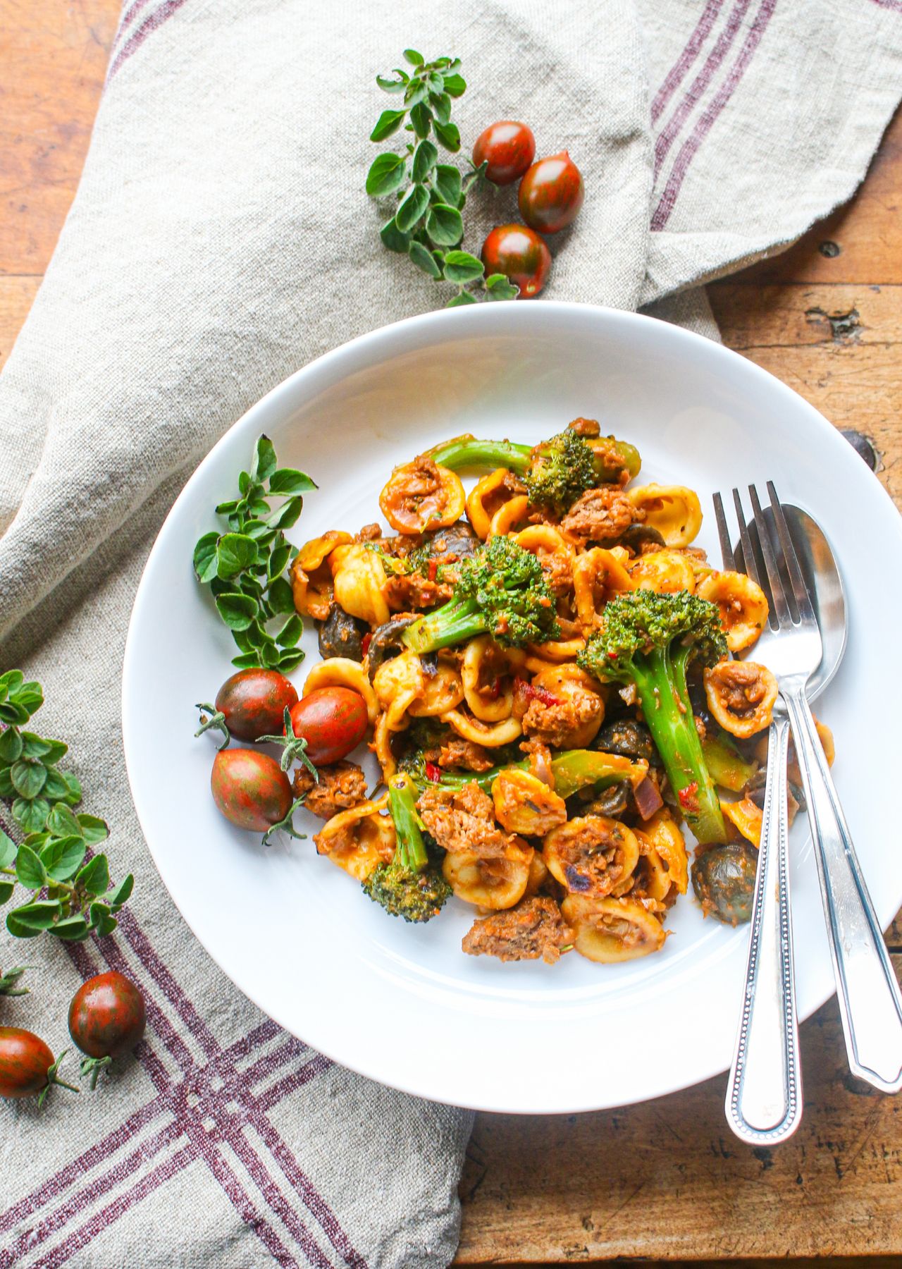 One Pot Vegan Orecchiette with Sausage and Broccoli (Puglian-Inspired Pasta)