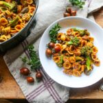 Get dinner on the table in less than 30 minutes with this easy One Pot Vegan Orecchiette Pasta with Sausage and Broccoli. It’s easy to make, and easy to clean up – what’s not to love?
