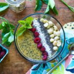 - Remove bowls from the refrigerator and top with shredded coconut, berries, chia seeds, and macadamia nuts.