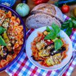 Turn to marinara sauce and a cornucopia of roasted vegetables—summer squash, eggplant, bell peppers, and onions—to make this healthy, delicious Vegan Pasta with Roasted Vegetables recipe sing with rustic simplicity.