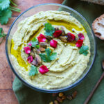 I often find that home-made hummus recipes are much more flavorful than typical store-bought creations. Which is why I love to keep these basic ingredients on hand—canned chickpeas, lemons (I have a tree!), garlic, tahini, and EVOO—to make hummus whenever I’m in the mood. To deepen the green color of this hummus, just throw in a handful of fresh garden herbs, such as parsley or cilantro. You can also change things up and swap chickpeas for white beans, and add other seasonings, such as smoked paprika, turmeric, or oregano. The sky is the limit to what you can do with this home-made pistachio hummus recipe!