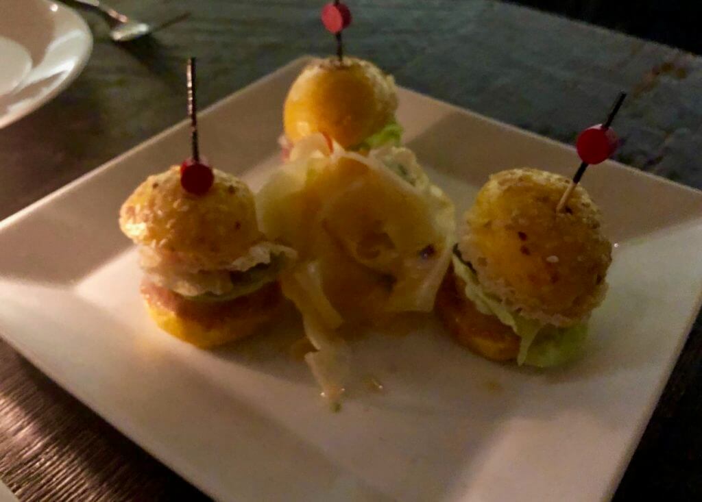 I love the way Amanda Cohen, the Chef at Dirt Candy, layers in her plant flavors. So the tiny burgers are made of carrots, as are the buns. True creativity.