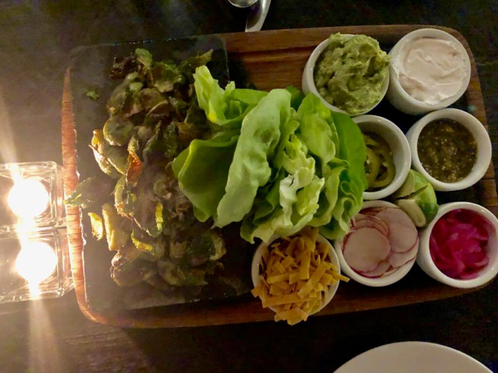 Isn’t this dish just the prettiest ever? It was like a plant-based crepe, with creamy filling, cilantro, and flowers.