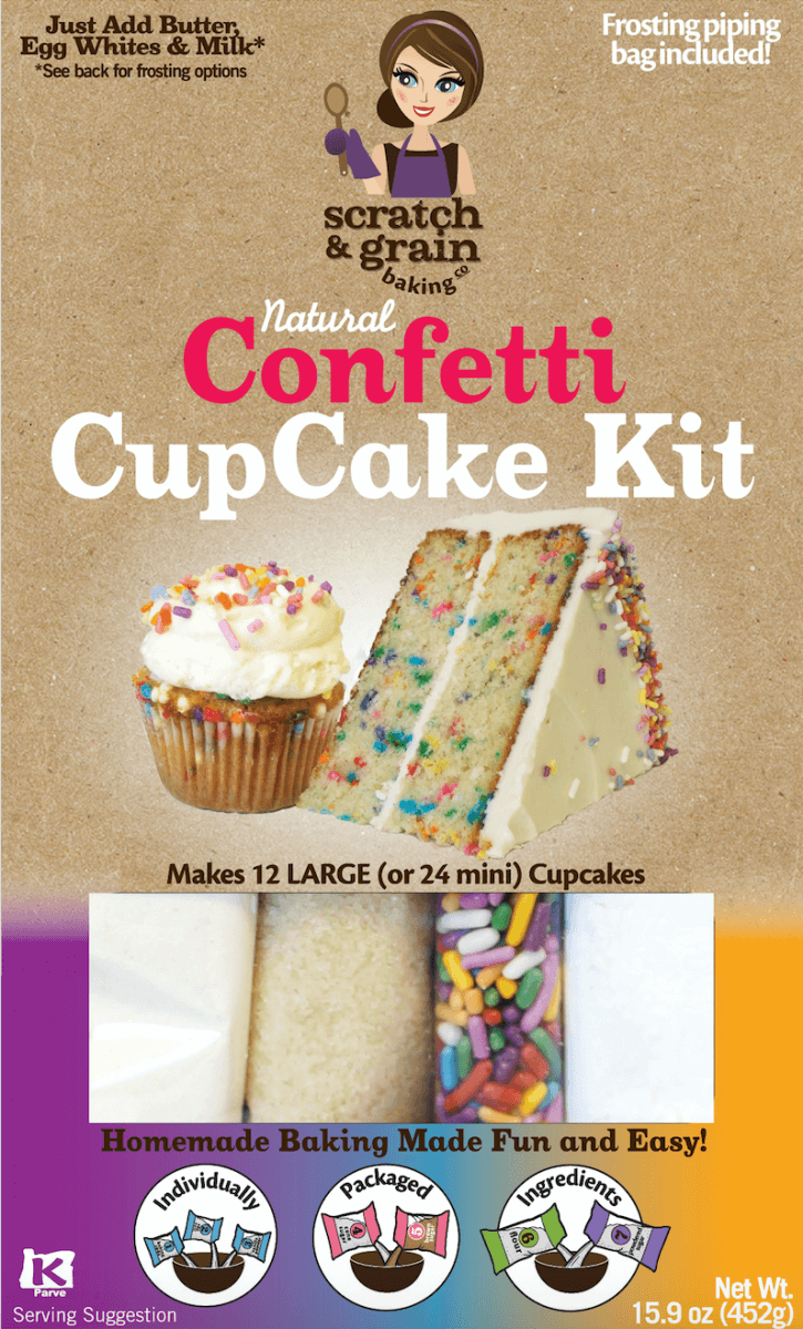 First of all, there is nothing else like this out there. There are no other baking kits that package ingredients separately; there’s not a single other one on the market. We’ve seen other baking kits pop up just recently, but what really differentiates us is that we manufacture each ingredient separately. Typical baking mixes are all in one bag, and maybe all the ingredients for the frosting is in a separate bag, and the sprinkles in another. We truly do individually package each ingredient. We label, number, and color code each of our bags, which we did with children in mind, so that you can look at the back of the box and see the colors, like blue and green, with icons that make it really easy to read and follow the directions for making these kits. This is a great educational tool for children. I have a 3 and 5 year old, and using this system of setting out the numbered ingredients, counting them, reading their names, and following the step by step experience is a great educational tool for them. We are definitely the only product out there that has all organic, full-blown baking kits. In addition, to sending these kits out to homes, we are also in grocery stores across the country. Some are gluten-free, only when I can make the product taste better than a regular one. For example, the brownies and cornbread mixes taste better gluten-free, but we won’t put out a product unless it tastes phenomenal.