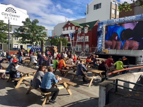 After dinner, we strolled along the harbor at twilight (it comes late in the summer), which offers incredible views of the city. That’s the famous Harpa Concert Hall in the background.