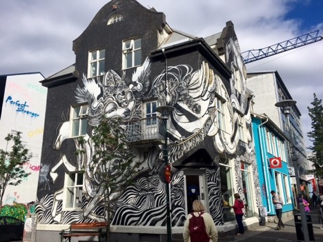 Walking along the streets in Reykjavik yields views of art on the buildings like this.