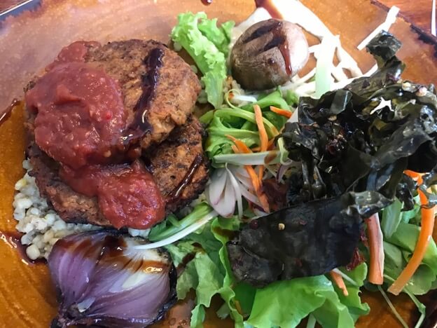 My meal was so lovely! A nut “steak” with a gorgeous salad.